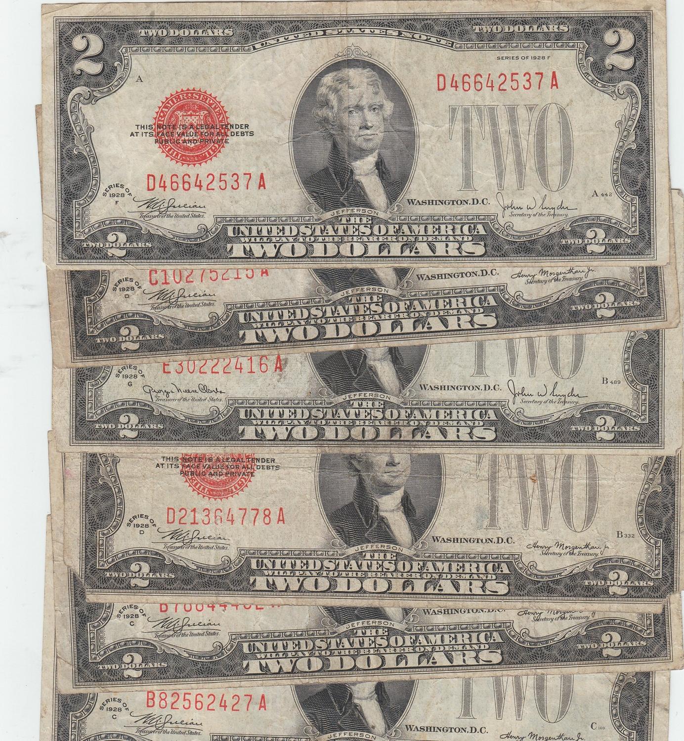 LOT OF 6 $2 RED SEAL 1928 SERIES