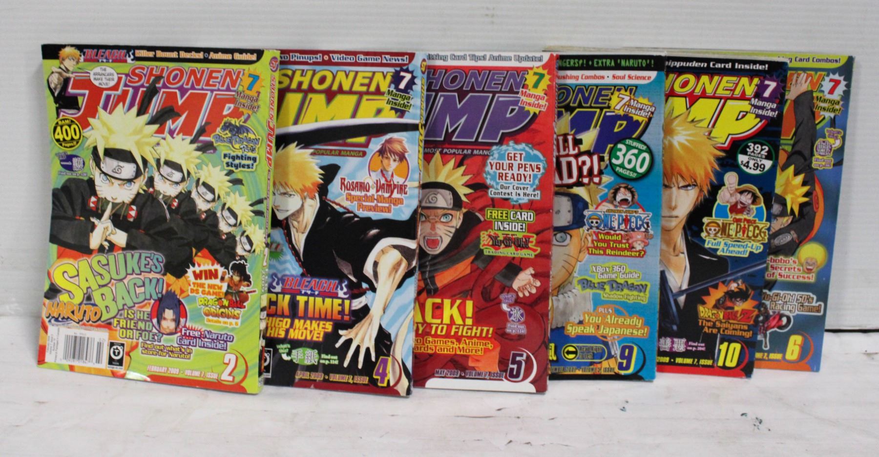 LOT OF 6 2009 SHONEN JUMP MAGAZINES WITH CARDS