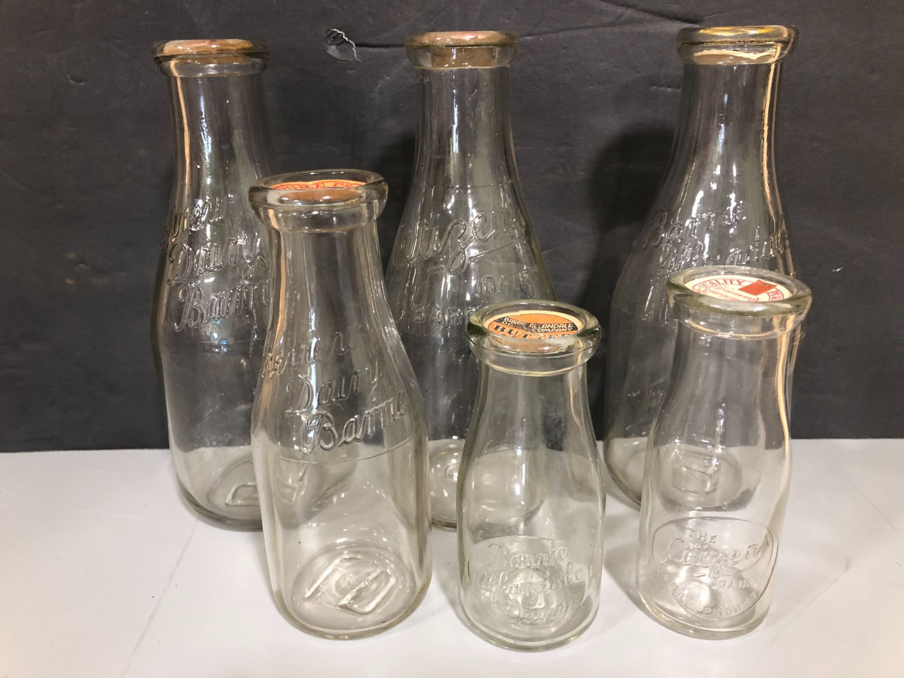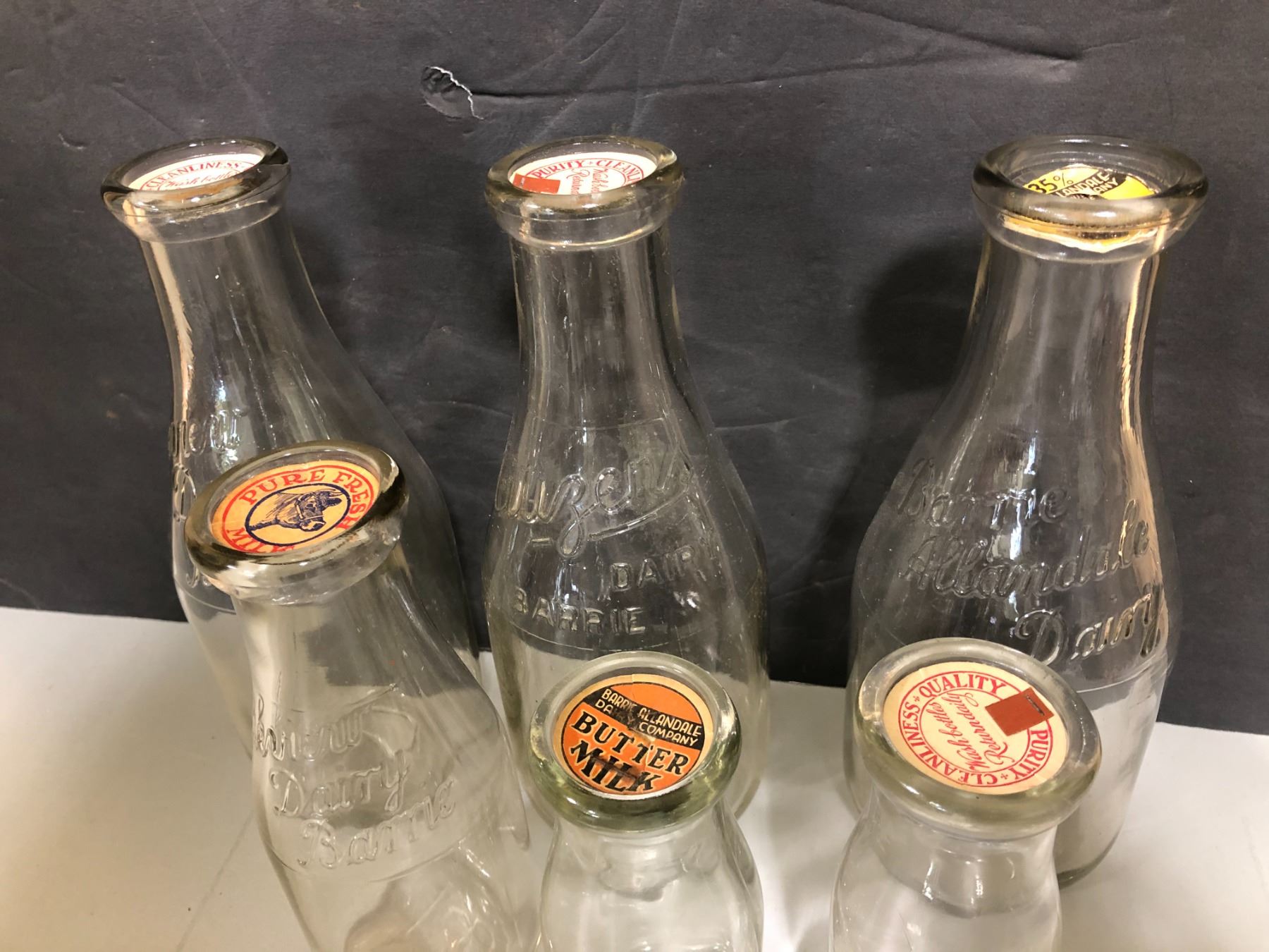 LOT OF 6 ANTIQUE EMBOSSED BARRIE DAIRY MILK BOTTLES