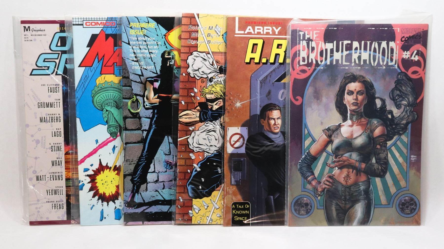 THE BROTHERHOOD #4 LARRY NIVEN A.R.M.#1 CAT AND MOUSE #1, 2 JUSTICE MACHINE PART 4 OF 7 OPEN SPACE NO.1***ITEM(S) LOCATED IN LETHBRIDGE ALBERTA. SMALL ITEMS ONLY ARE AVAILABLE FOR FREE TRANSPORT TO EDMONTON OFFICE (READ AUCTION DETAILS FOR MORE INFORMATION)