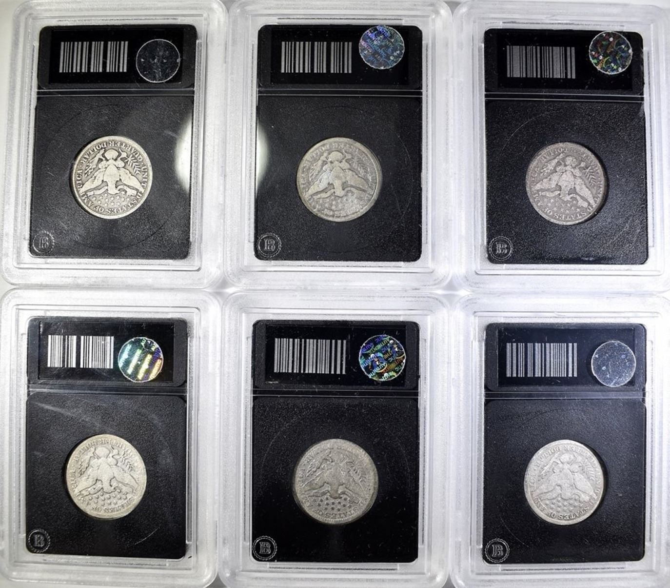 Grading: Every person has their own opinion. It is the responsibility of the buyer to examine and grade to their own satisfaction before they bid. ABSOLUTELY NO COIN RETURNS ON THE BASIS OF GRADE. Buyers shall rely entirely on their own inspection and information. Our estimates are values taken from the latest "Coin World" trends based on t he grade listed of a coin. This value/estimate is not an inducement to bid this amount. Bid the amount you wish. If you have questions or concerns about any coin, call us before you bid.