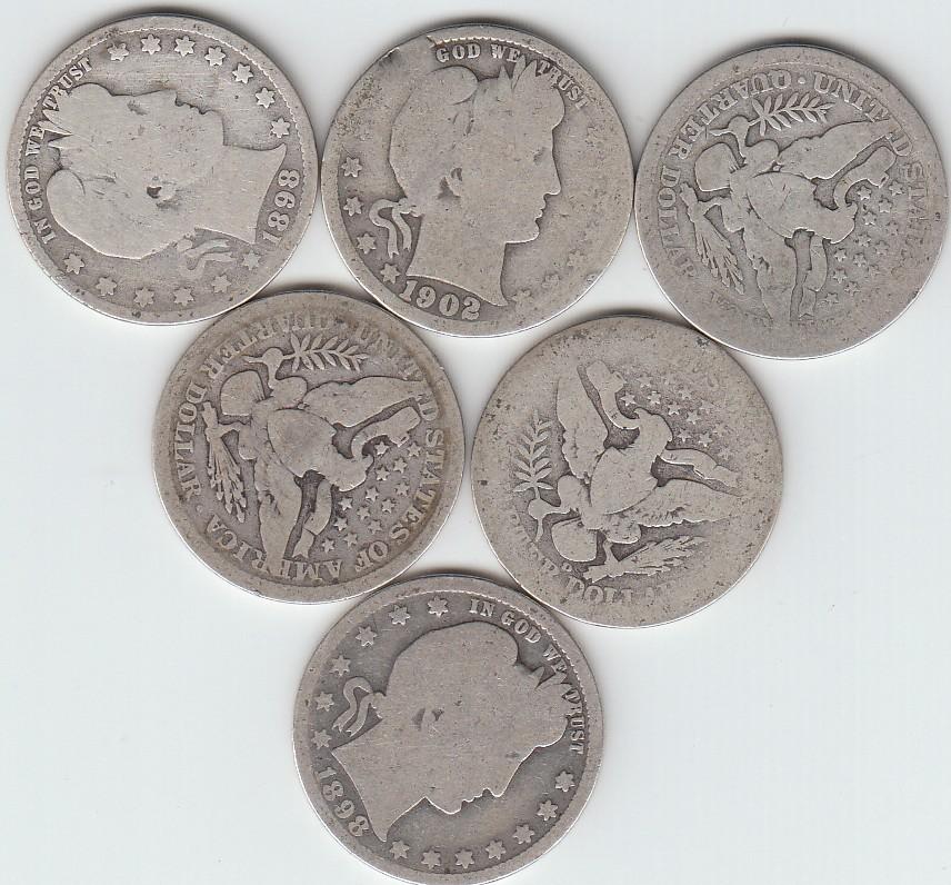 LOT OF 6 BARBER SILVER QUARTERS
