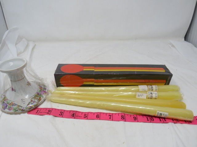 LOT OF 6 (CANDLE HOLDER *SCHUMANN BAVARIA), 4 CANDLES, BOX OF LONG MATCHES *UNOPENED*