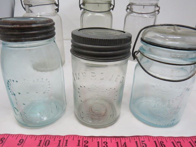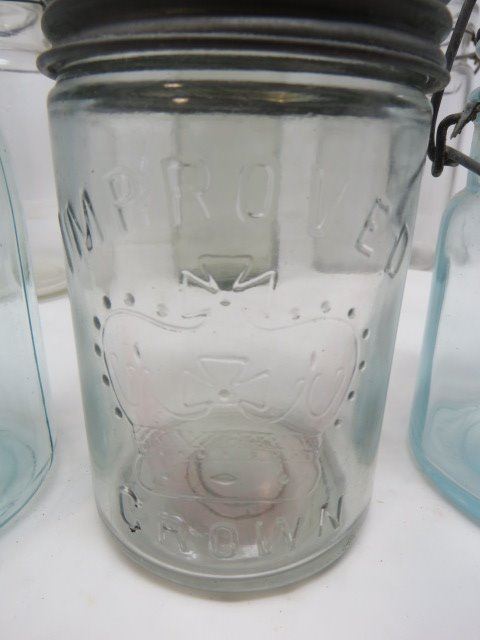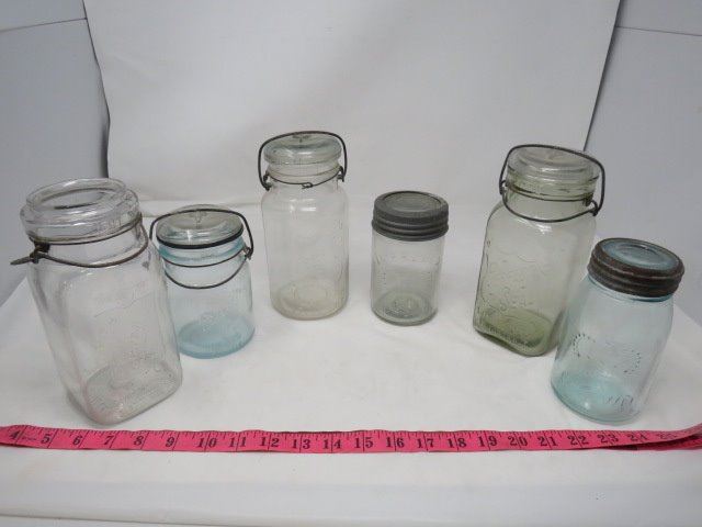 LOT OF 6 CANNING JARS (GLASS-5 WITH LIDS) *VINTAGE*