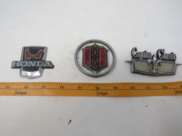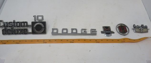 LOT OF 6 CAR EMBLEMS (METAL) *CUSTOM DELUXE 10, CAPRICE CLASSIC, HONDA , DODGE, ETC)