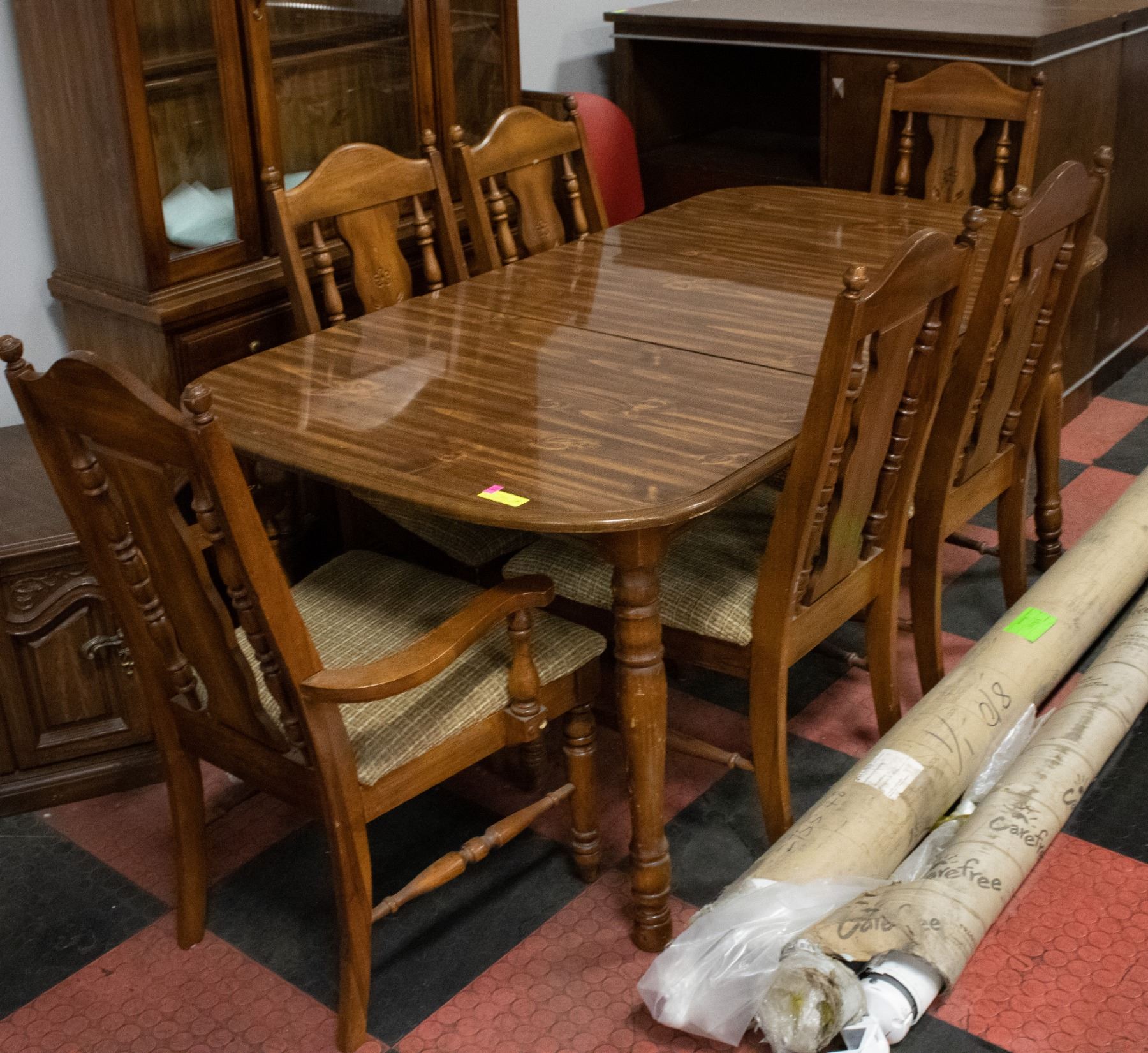 LOT OF 6 CHAIRS, TABLE W/ 2 LEAFS
