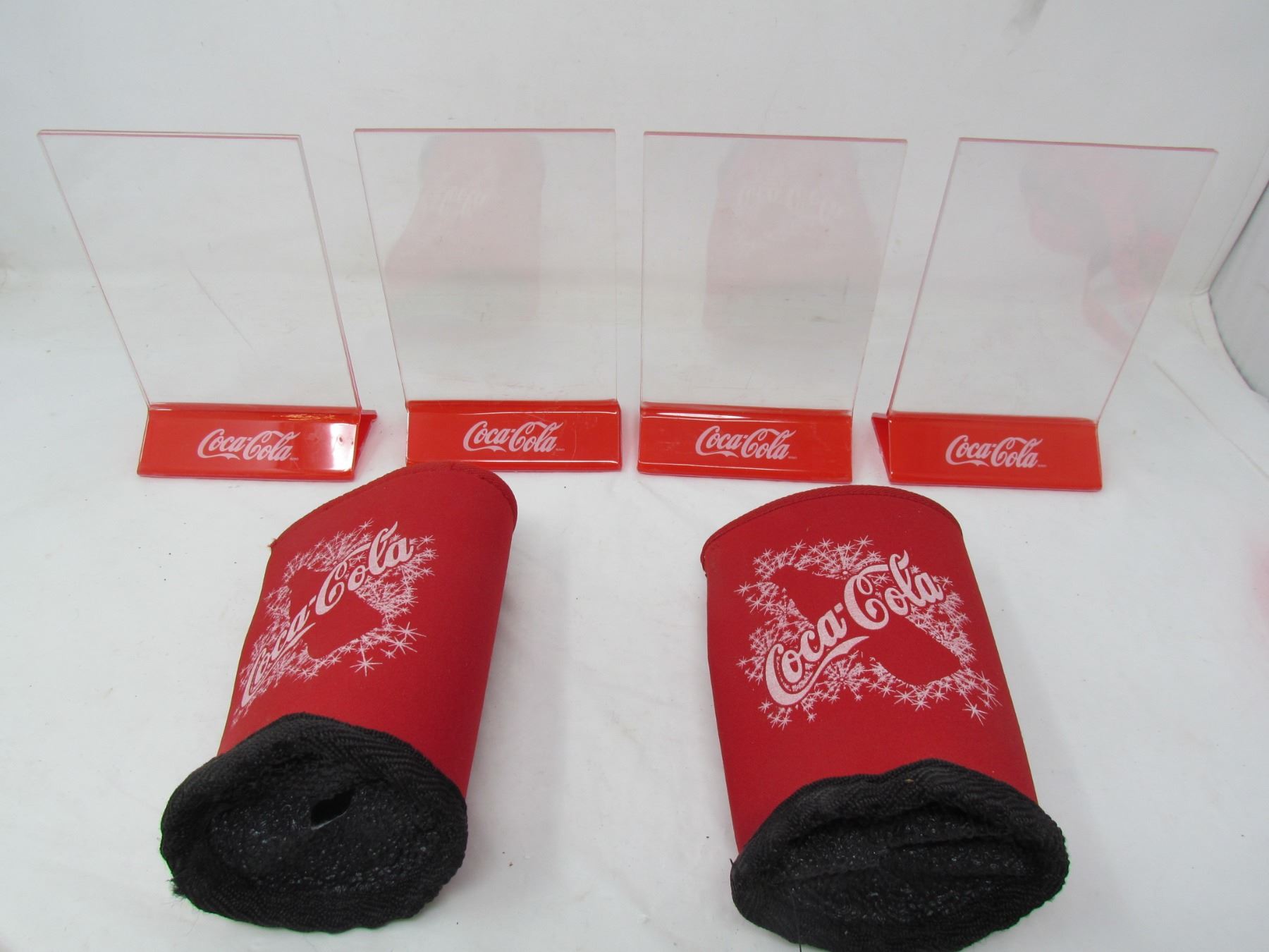 LOT OF 6 COCA-COLA ITEMS (4 X TABLETOP ADVERTISING HOLDERS) *2 X DRINK COOLERS*