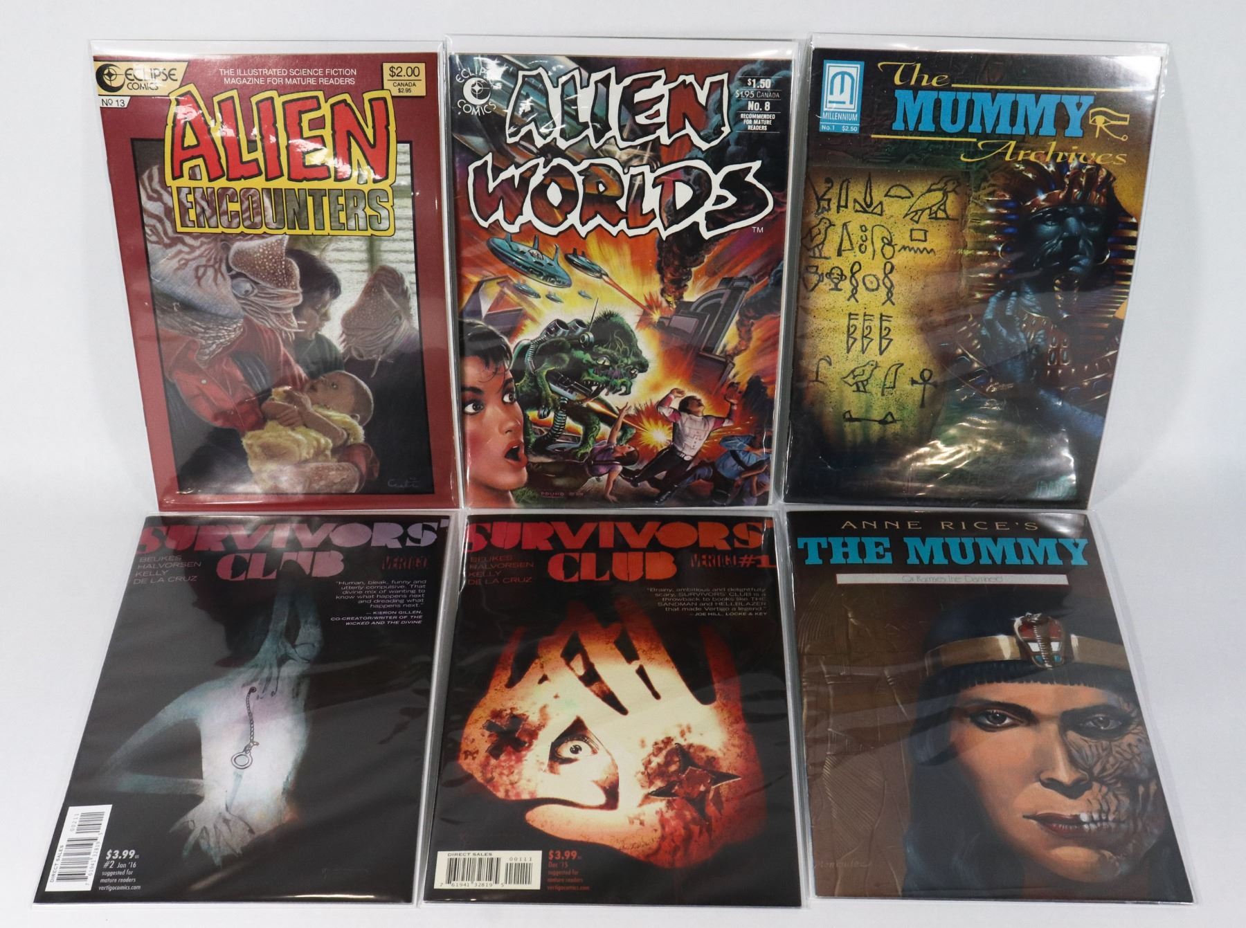LOT OF 6 COMICS INCLUDES "SURVIVORS CLUB", "ALIEN