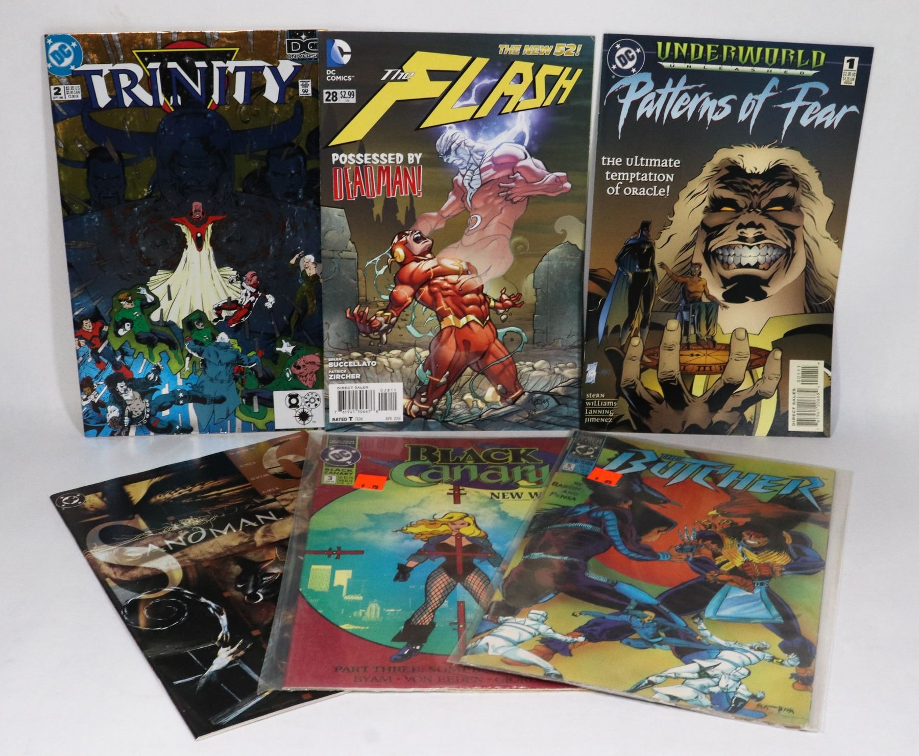 TRINITY #2 THE NEW 52 THE FLASH #28 UNDERWORLD UNLEASHED PATTERNS OF FEAR #1 SANDMAN #6 BLACK CANARY #3THE BUTCHER #5***ITEM(S) LOCATED IN LETHBRIDGE ALBERTA. SMALL ITEMS ONLY ARE AVAILABLE FOR FREE TRANSPORT TO EDMONTON OFFICE (READ AUCTION DETAILS FOR MORE INFORMATION)