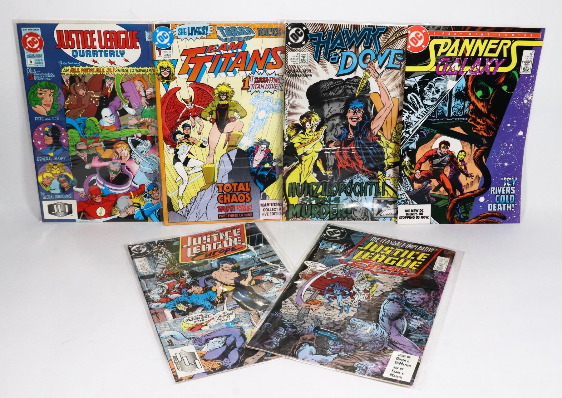JUSTICE LEAGUE EUROPE #4, 7 SPANNERS GALAXY #2 HAWK AND DOVE #4 TEAM TITANS #1 JUSTICE LEAGUE QUARTERLY #5***ITEM(S) LOCATED IN LETHBRIDGE ALBERTA. TRANSPORT TO EDMONTON SERVICE WILL BE REDUCED / CANCELED UNTIL FURTHER NOTICE, CANADA POST SHIPPING IS AVAILABLE. WE CAN HOLD JEWELRY, CURRENCY, COMIC BOOK, VIDEO GAME PURCHASES UNTIL A TRANSPORT VEHICLE IS AVAILA