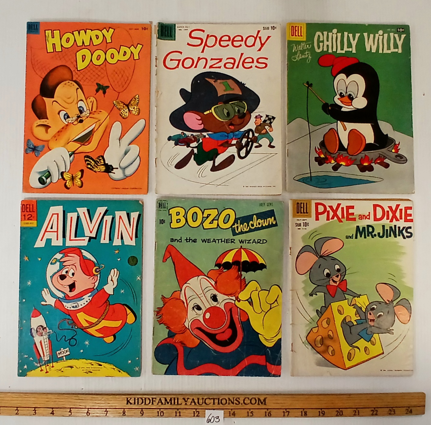 LOT OF 6 - DELL COMICS - BOZO THE CLOWN, CHILLY WILLY, SPEEDY GONZALES, ALVIN, ETC