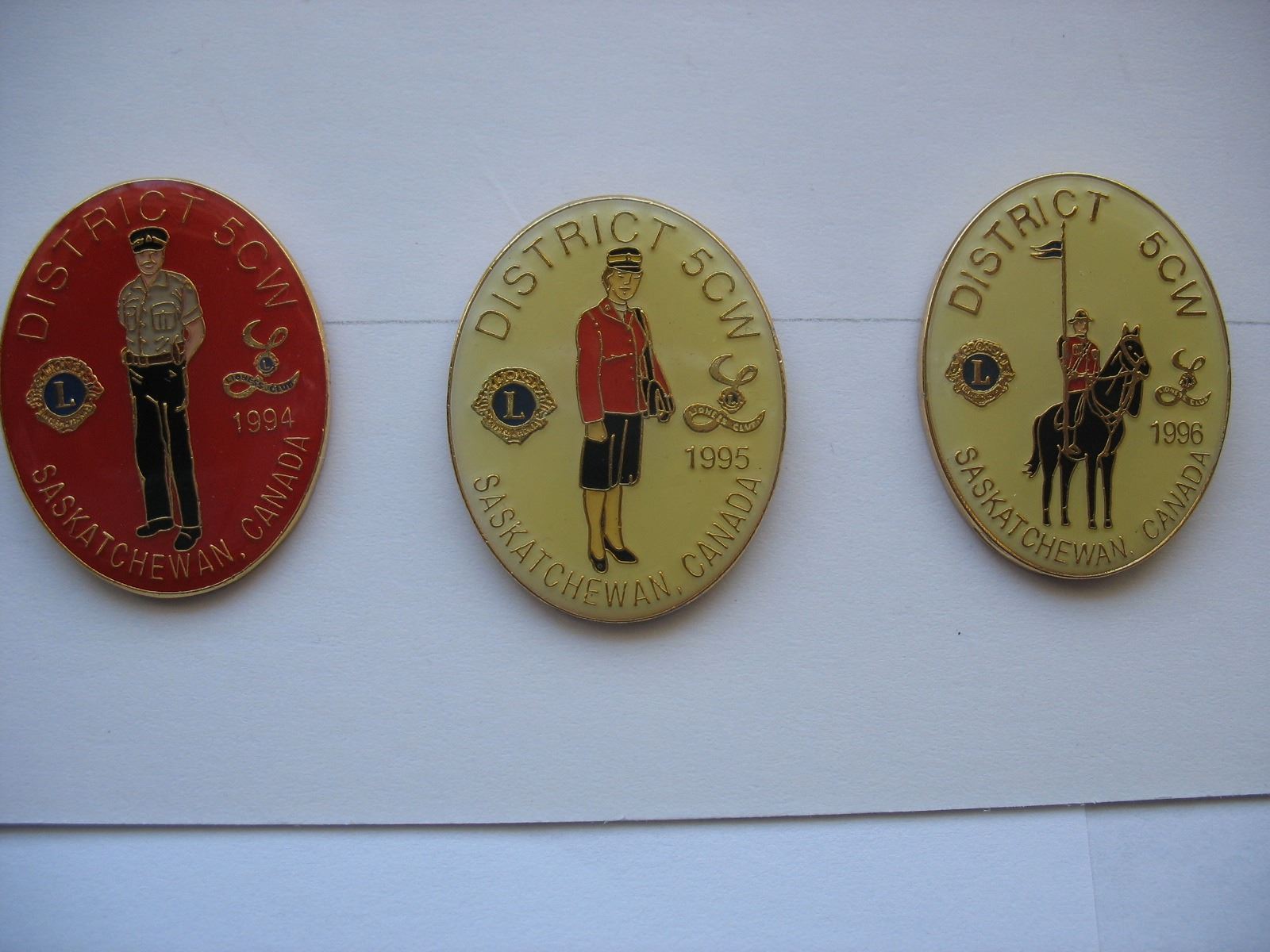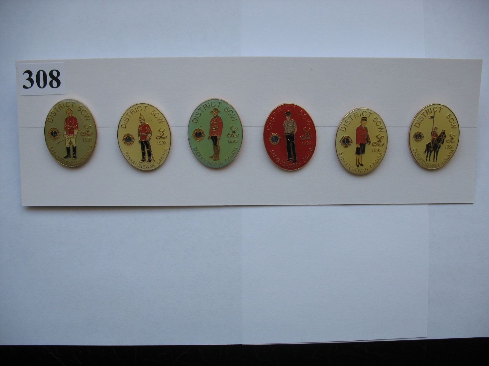 LOT OF 6 DIFFERENT YEARS - DISTRICT 5CW LIONS CLUB PINS - Showing different RCMP Members
