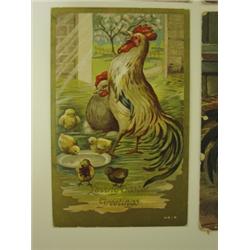 LOT OF 6 EASTER POSTCARDS FEATURING CHICKENS. One is gilt decorated. Three are marked on reverse "German American Novelty Art Series No. 540". One is postmarked 1906, one is postmarked 1910, and one is postmarked illegibly.