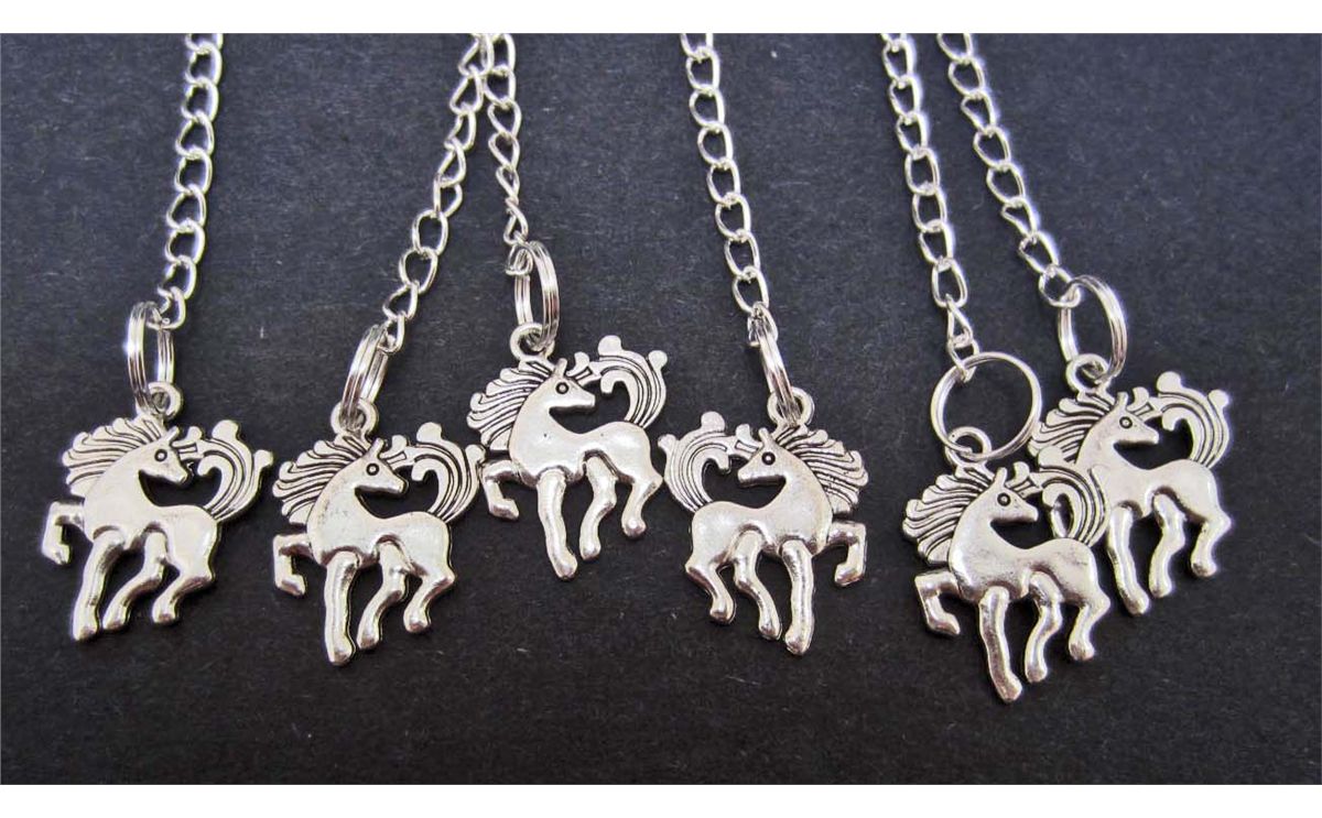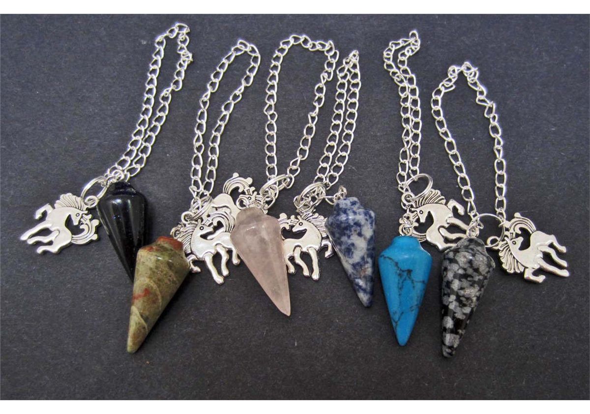 LOT OF 6 GEMSTONE PENDULUMS W/ TIBETAN HORSE PENDANTS