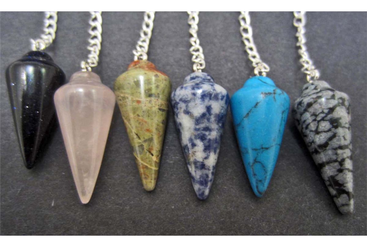 LOT OF 6 GEMSTONE PENDULUMS W/ TIBETAN HORSE PENDANTS