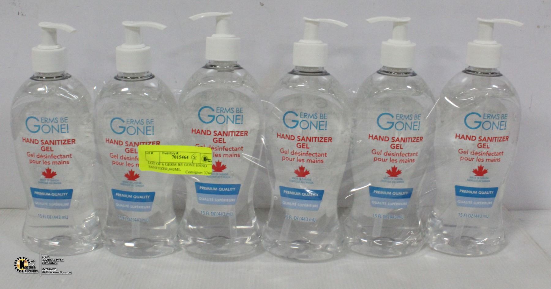 LOT OF 6 GERM BE GONE HAND SANITIZER,443ML