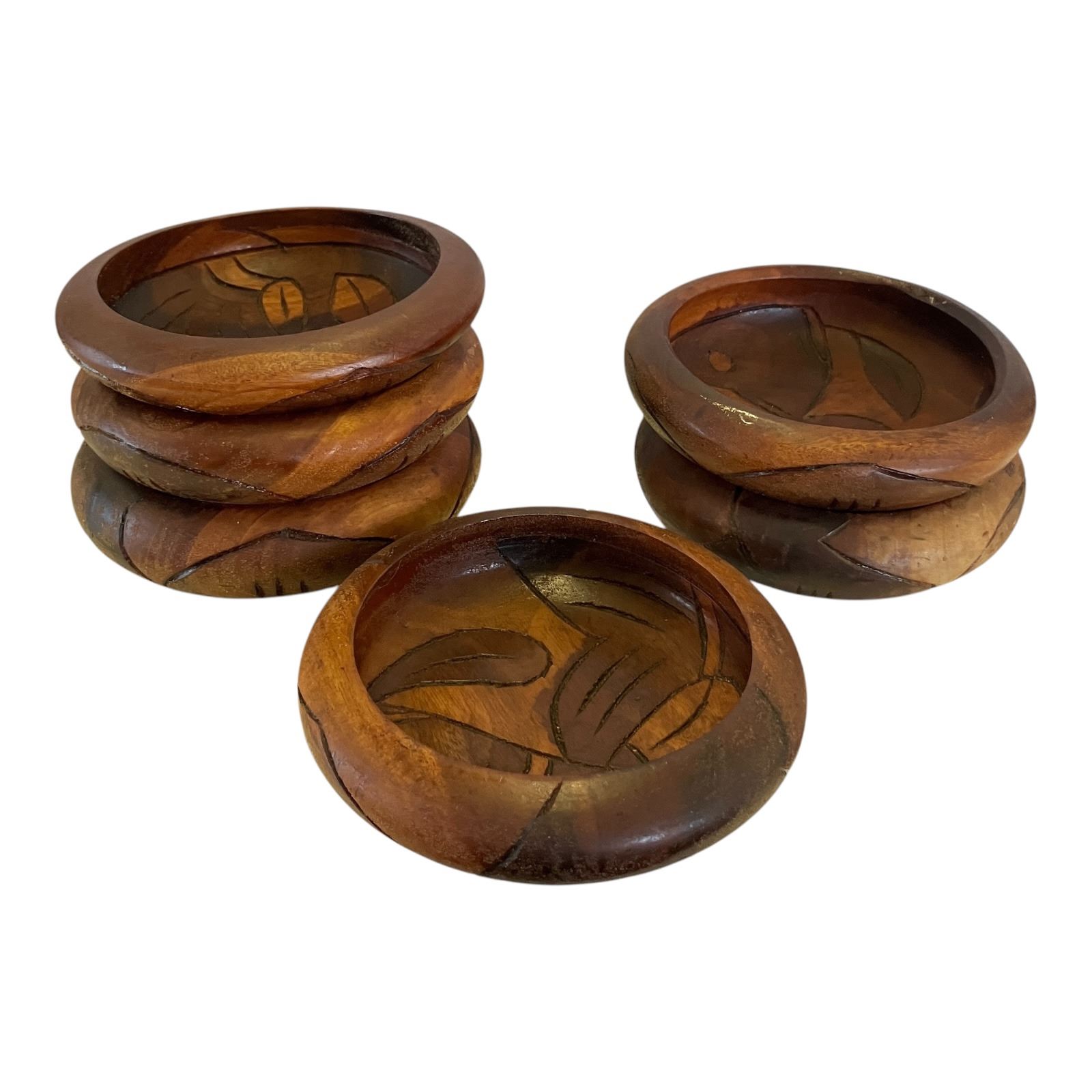 Teakwood composition, 1 bowl visibly scratched finish - 6 in. diameter
