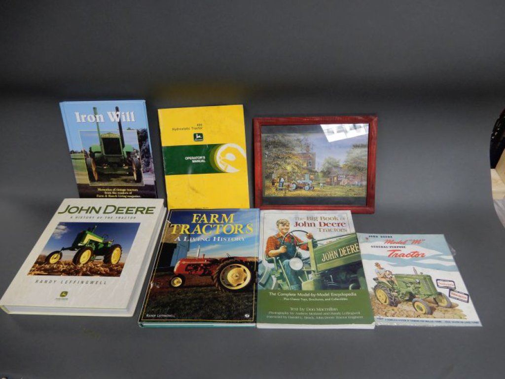 LOT OF 6 JOHN DEERE BOOKS & FRAMED PICTURE MODEL "M" TRACTOR SPECIFICATIONS BOOK- OPERATOR'S MANUAL - 4 TRACTOR HISTORY BOOKS LOCATION: LOWER BACKROOM