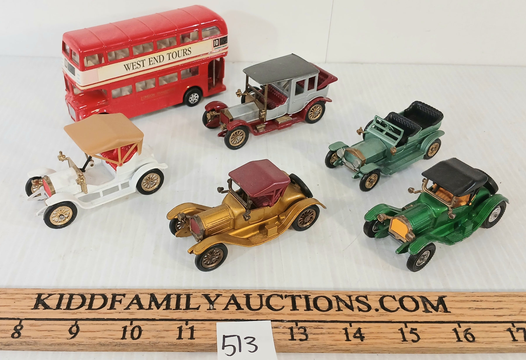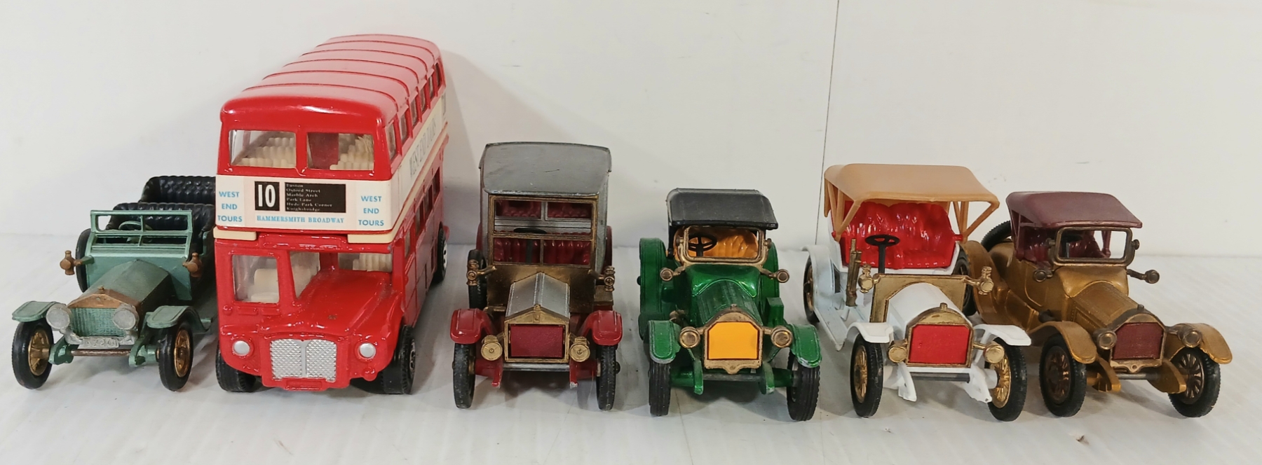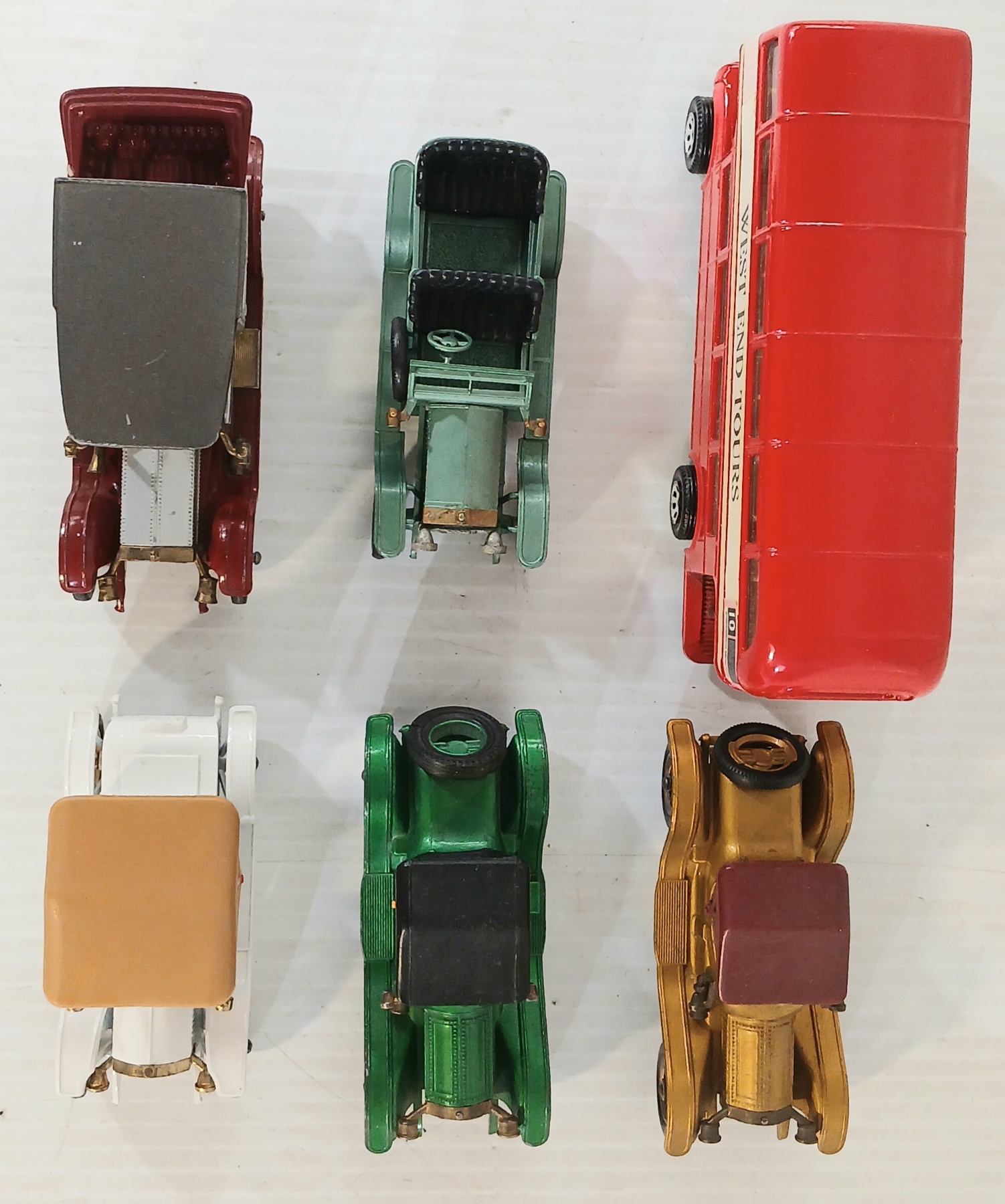 LOT OF 6 - LESNEY & JUNIORS DIECAST MODELS - 1913 CADILLAC, LONDON BUS, 1912 ROLLS-ROYCE, ETC