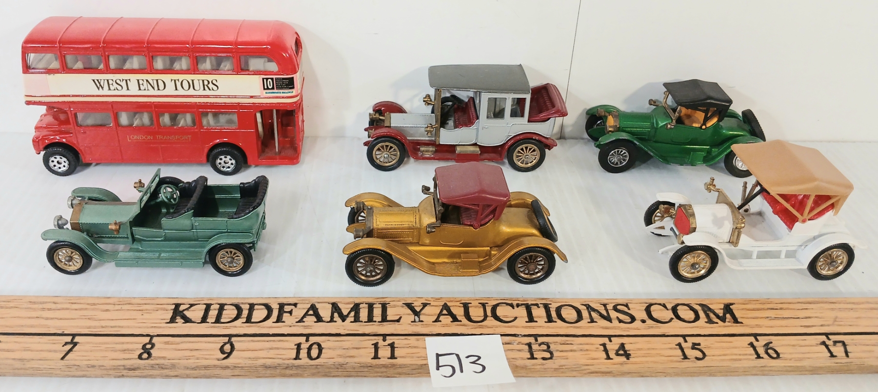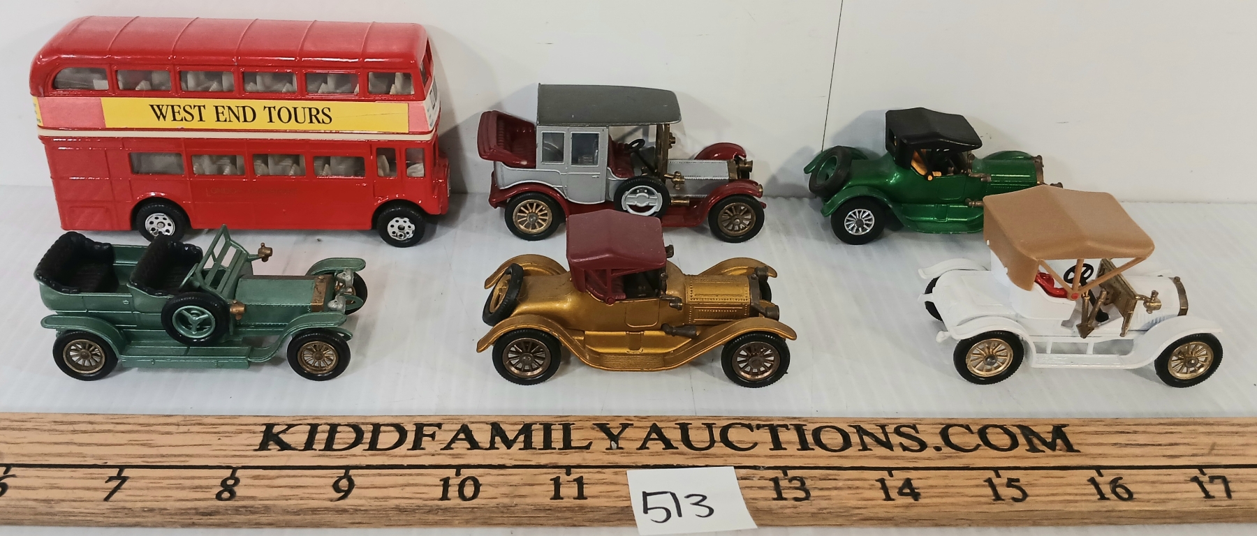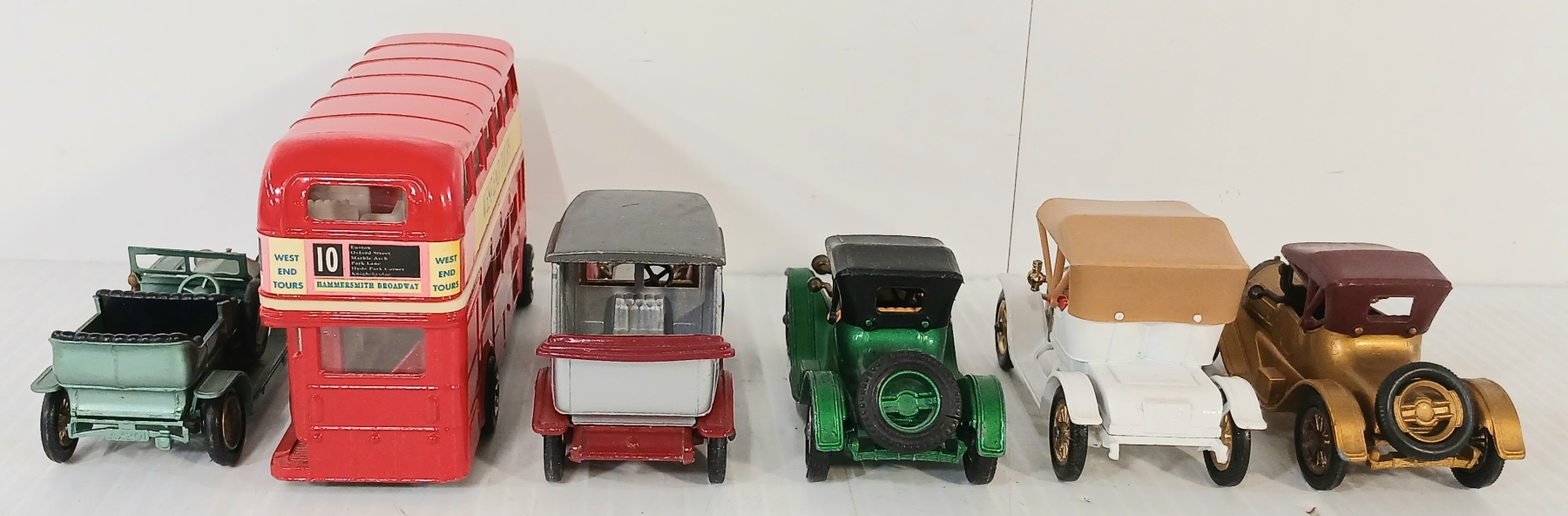 LOT OF 6 - LESNEY & JUNIORS DIECAST MODELS - 1913 CADILLAC, LONDON BUS, 1912 ROLLS-ROYCE, ETC