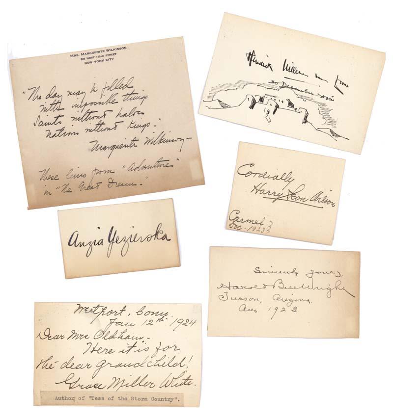 Grace Miller White (1868 - 1957), Marguerite Wilkinson, Hendrik Willem van Loon (1882 –1944), Harry Leon Wilson (1867-1939), Harold Bell Wright , (1872 –1944), Anzia Yezierska. All generally fine or better.