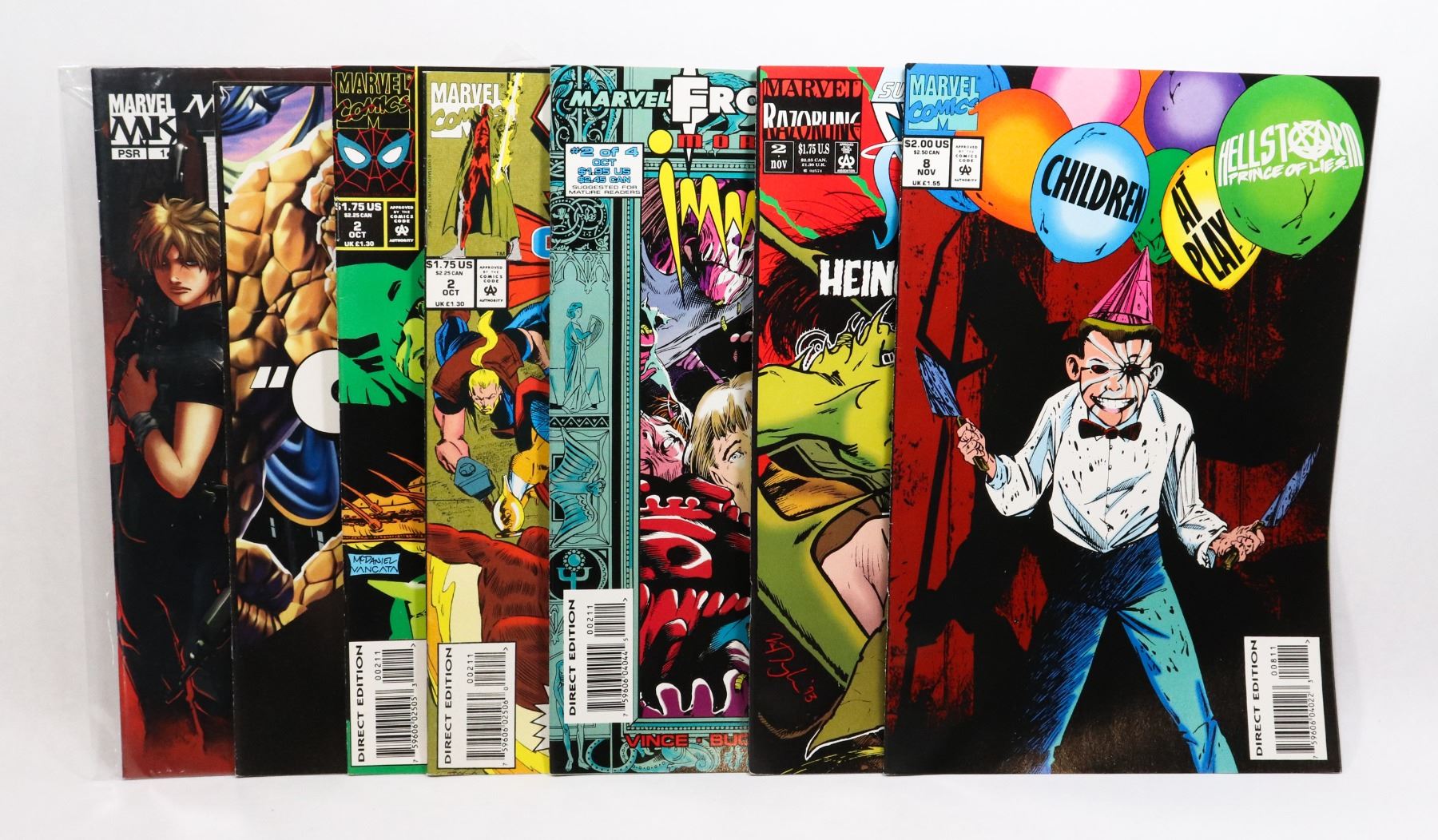 MARVEL KNIGHTS PUNISHER 2099 #1 MARVEL OVERPOWER CARD GAME STARTER DECK NO.1 THE LETHAL FOES OF SPIDERMAN #2 THOR CORPS #2 MARVEL FRONTIER COMICS IMMORTALIZE #2 OF 4MARVEL CLIVE BARKER SAINT SINNER MARVEL HELLSTORM PRINCE OF LIES #8***ITEM(S) LOCATED IN LETHBRIDGE ALBERTA. SMALL ITEMS ONLY ARE AVAILABLE FOR FREE TRANSPORT TO EDMONTON OFFICE (READ AUCTION DETAILS FOR MORE INFORMATION)