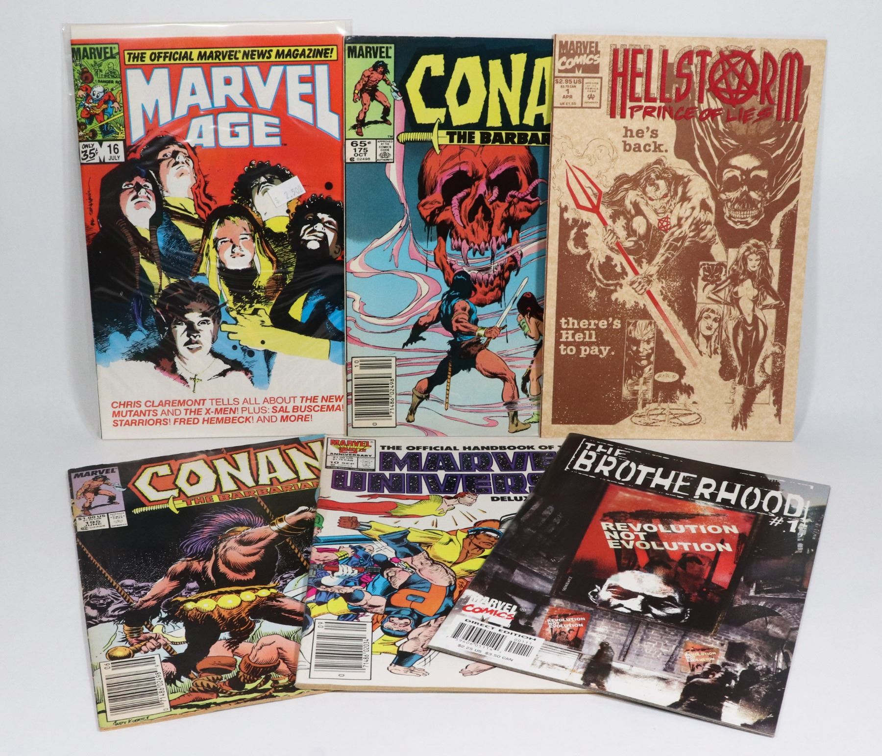 MARVEL AGE #16 CONAN THE BARBARIAN #175, 195 THE BROTHERHOOD #1 HELLSTORM PRINCE OF LIES #1 MARVEL UNIVERSE #10***ITEM(S) LOCATED IN LETHBRIDGE ALBERTA. SMALL ITEMS ONLY ARE AVAILABLE FOR FREE TRANSPORT TO EDMONTON OFFICE (READ AUCTION DETAILS FOR MORE INFORMATION)