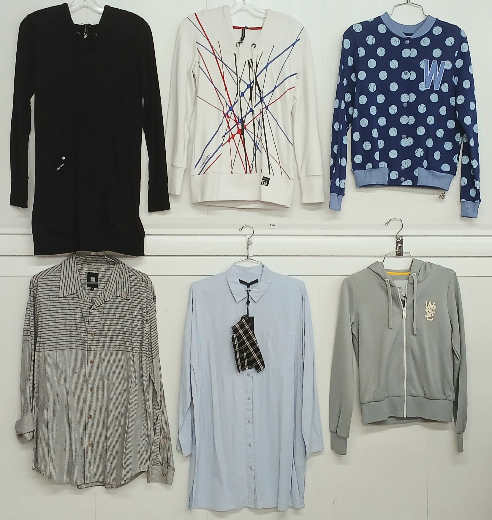 LOT OF 6 - MEN'S BUTTON-UP SHIRTS, HOODIES & BASEBALL JACKET - MFG WESC, INSIGHT, RAGWEAR, ETC