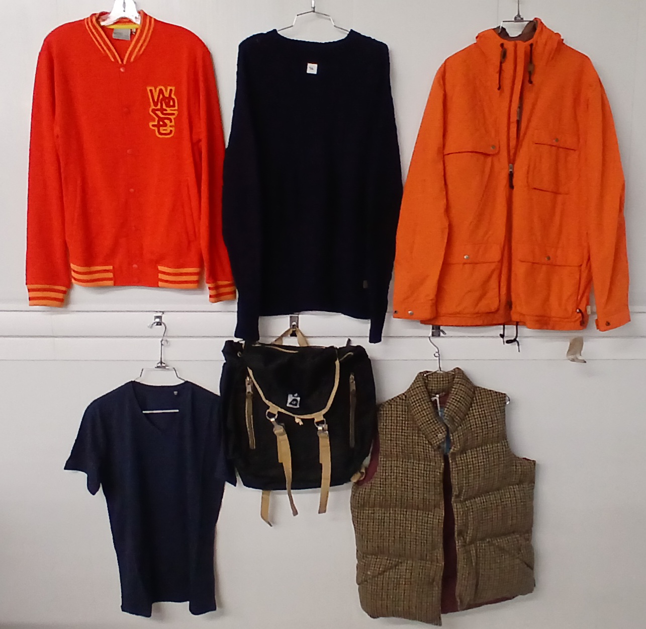LOT OF 6 - MEN'S MEDIUM JACKETS, SHIRT, SWEATER, PACK & VEST - FT PENFIELD, POLER, ETC
