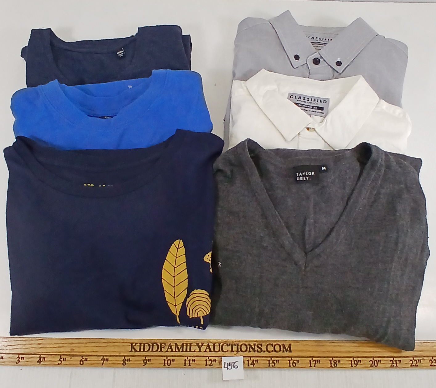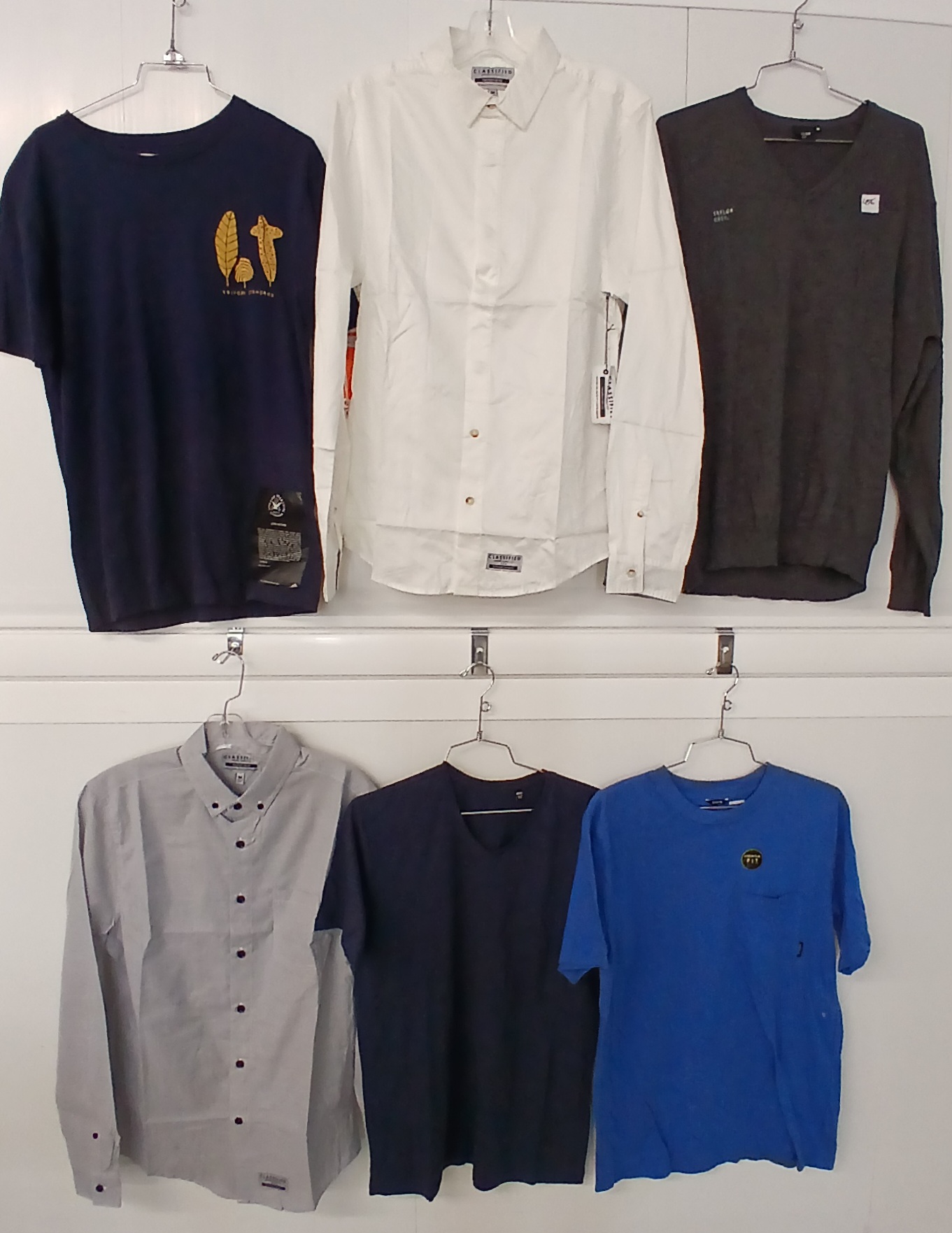 LOT OF 6 - MEN'S SWEATER, T-SHIRTS & BUTTON-UPS - MFG TAYLOR GREY, CLASSIFIED, BRIXTON, ETC
