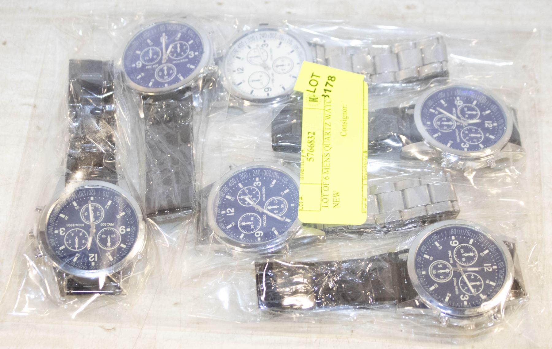 LOT OF 6 MENS QUARTZ WATCHES NEW