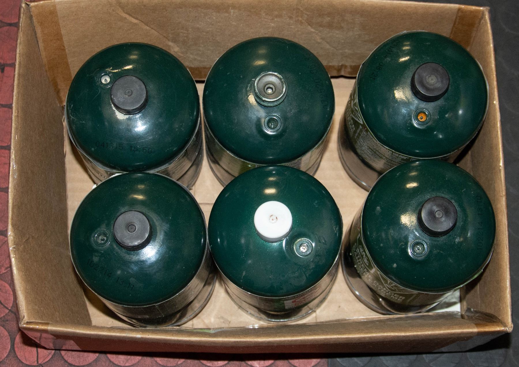 LOT OF 6 MINI PROPANE TANKS (FULL) NO SHIPPING **ALL ITEMS MUST BE REMOVED BY 5PM SATURDAY, AUGUST 24th 2024. ALL REMAINING ITEMS WILL BE SUBJECT TO A $6.00 PER DAY STORAGE CHARGE. ANY ITEMS REMAINING AFTER MONDAY, SEPTEMBER 16TH 2024 WILL BE CONSIDERED FORFEITED. NO REFUNDS WILL BE ISSUED FOR FORFEITED ITEMS. TO SCHEDULE A PICK UP APPOINTMENT CLICK HERE