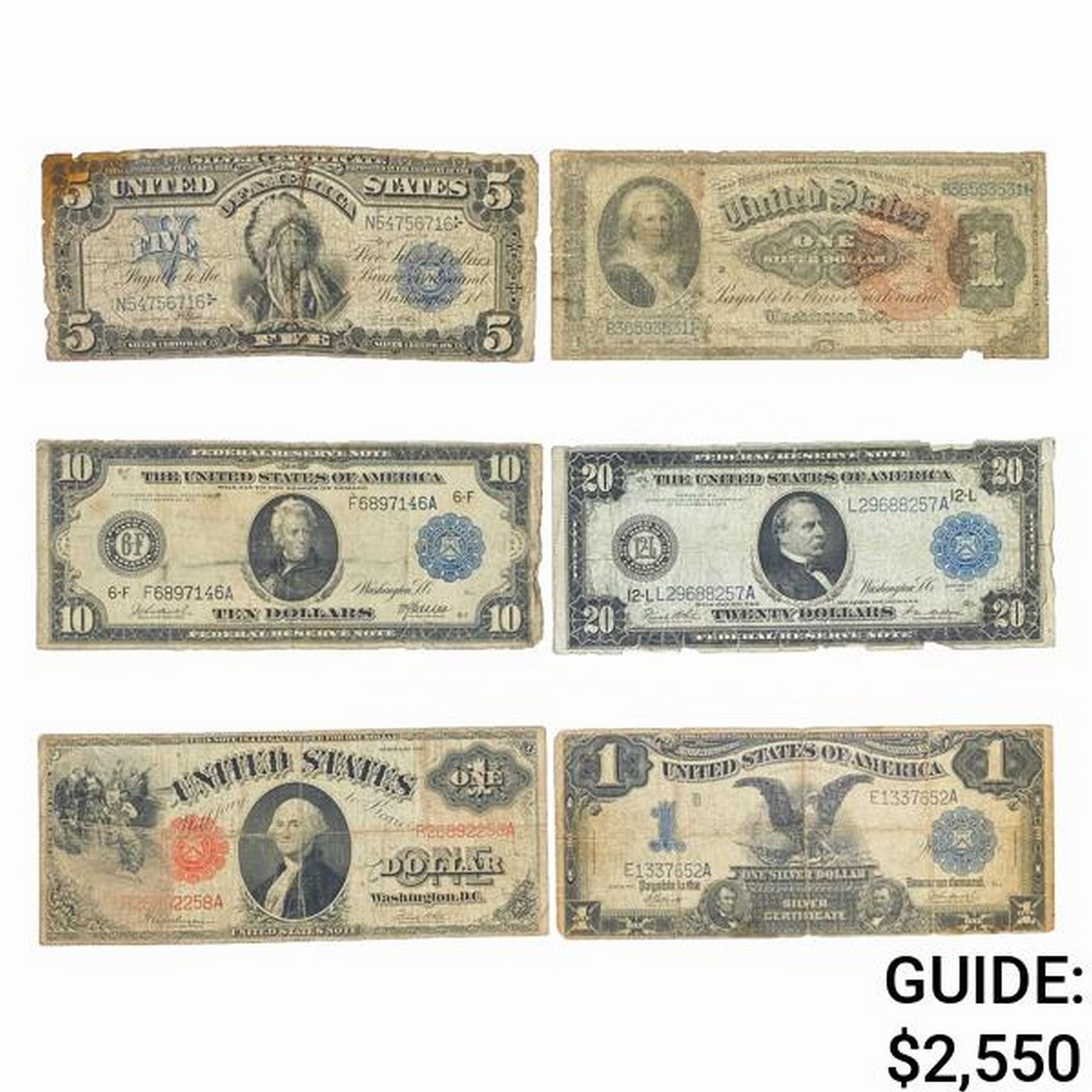 LOT OF 6 MIX LARGE SIZE CURRENCY NOTES 1886-1917