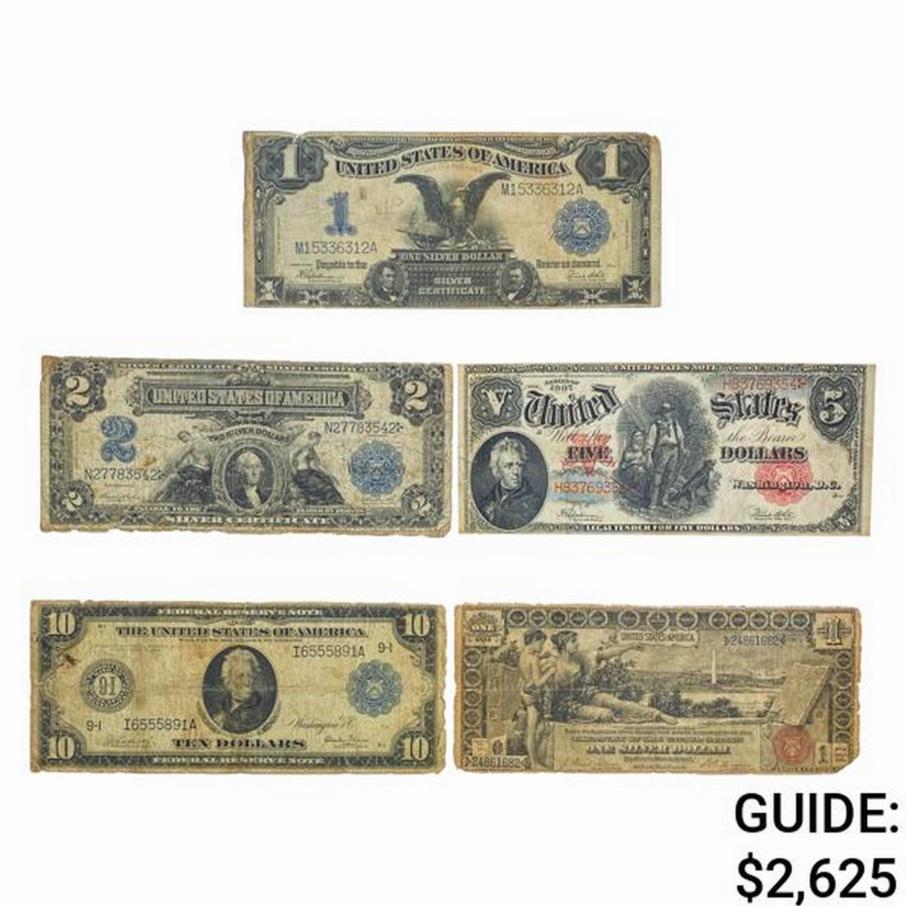 LOT OF 6 MIX LARGE SIZE CURRENCY NOTES 1891-1914