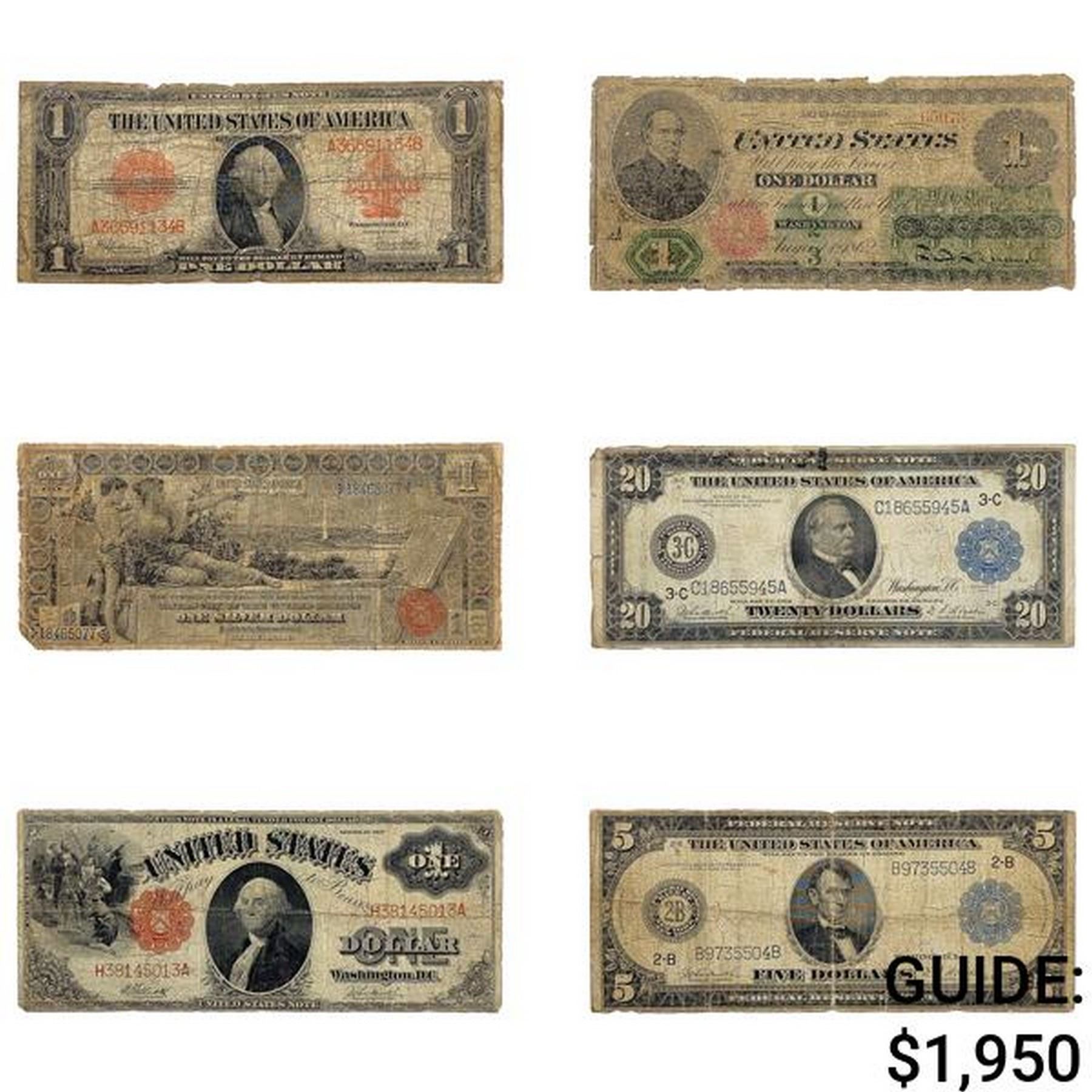 LOT OF 6 MIXED LARGE SIZE CURRENCY NOTES 1862-1923