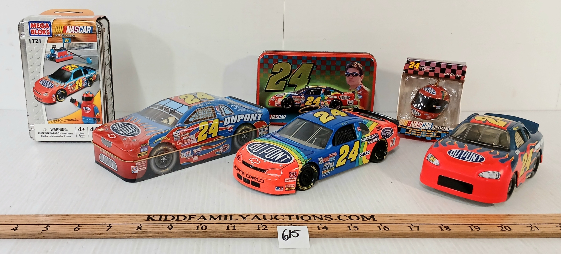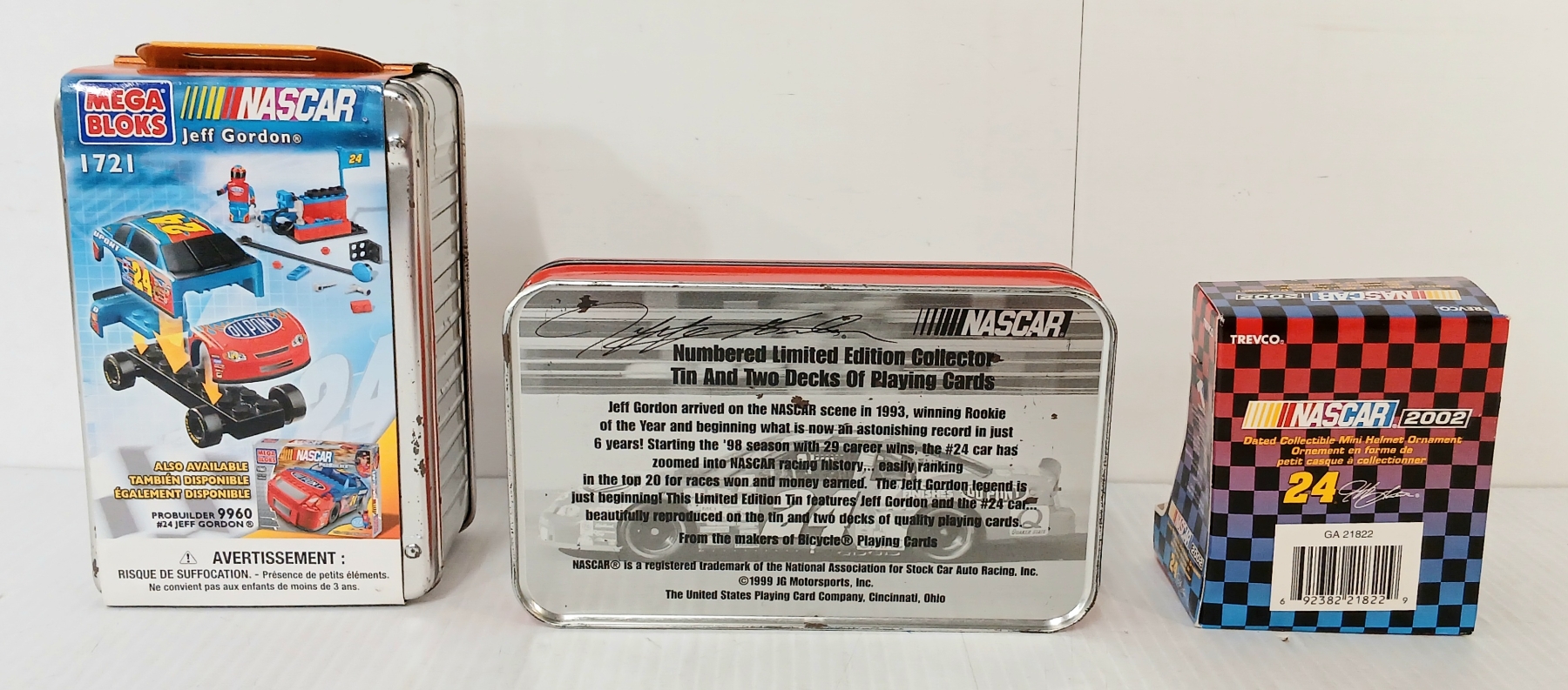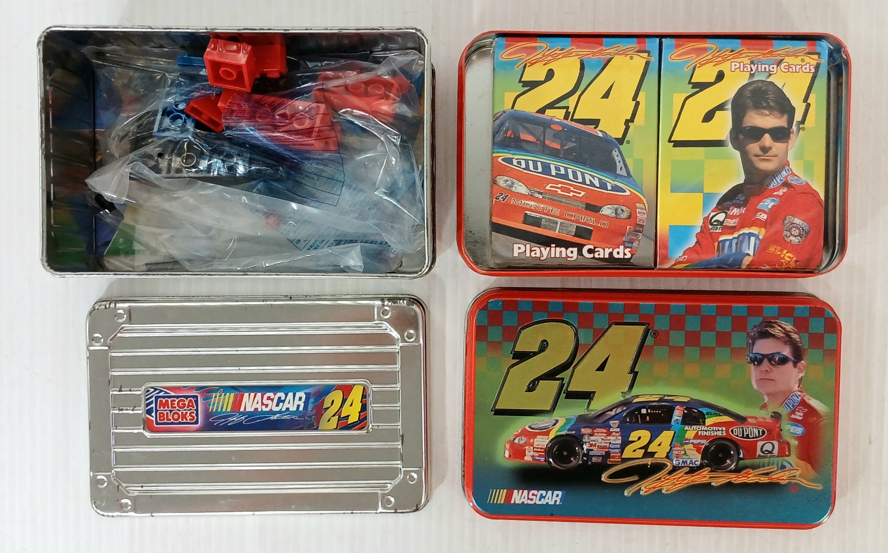 LOT OF 6 - NASCAR JEFF GORDON #24 COLLECTIBLES - DIECAST MODEL, LEGO KIT, CARD GAME, KEYCHAIN, ETC