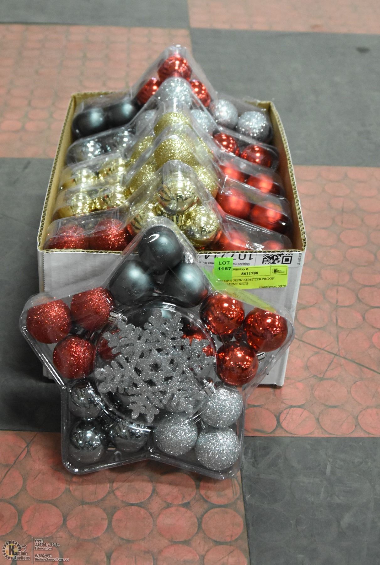 LOT OF 6 NEW SHATTERPROOF ORNAMENT SETS