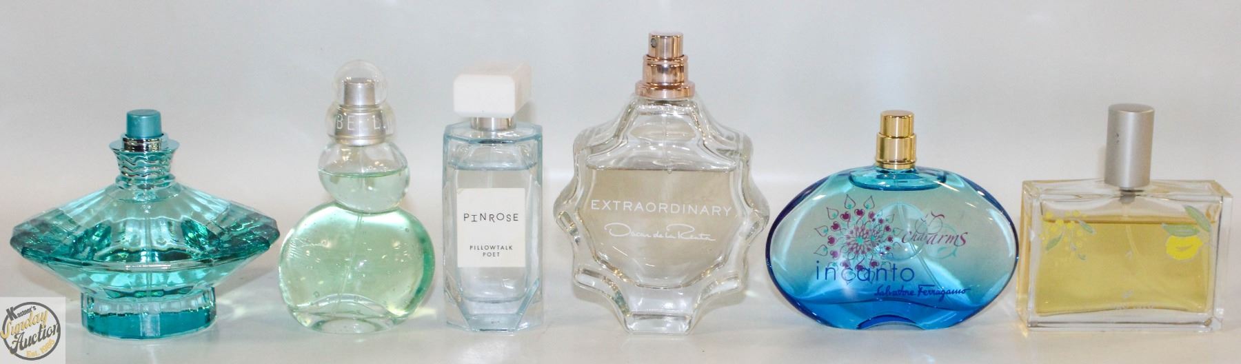 SPEARS 100 ML, INCANTO SALVADOR FERRAGANO 50 ML MADE IN ITALY, EXTRORDINARY OSCAR DE LA RENTA 90 ML, PINROSE PILLOWTALK POET 50 ML, BELLE AZZARO PARIS 50 ML, RIVIERA FRANCE 50 ML (MOST FULL) **ALL ITEMS MUST BE REMOVED BY 5PM SATURDAY, MAY 10TH 2025. ALL REMAINING ITEMS WILL BE SUBJECT TO A $6.00 PER DAY STORAGE CHARGE. ANY ITEMS REMAINING AFTER MONDAY, MAY 26TH 2025 WILL BE CONSIDERED FORFEITED. NO REFUNDS WILL BE ISSUED FOR FORFEITED ITEMS. TO SCHEDULE A PICK UP APPOINTMENT CLICK HERE