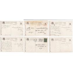 LOT OF 6 GILT DECORATED PATRIOTIC POSTCARDS. Feature Revolutionary scenes. Marked on reverse "Raphael Tuck & Sons 'Independence Day' Series of Post Cards No. 109-Art Publishers to Their Majesties The King and Queen-Printed in Saxony". One is postmarked 1908 and one is postmarked illegibly. Four have no postmark.
