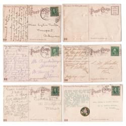 LOT OF 6 POSTCARDS FROM FLORIDA. All are published by the S. Langsdorf & Co., New York. They feature scenes from Florida and are decorated on face with three alligators forming outline. They read "First Presbyterian Church and Monroe Street, Jacksonville Florida" (Postmarked 1908), "Greetings from the Sunny South, Picking Cotton" (Postmarked illegibly), "Canary Date Palm, Florida" (Postmarked 1908), "Veranda Tampa Bay Hotel, Tampa, Florida" (Postmarked 1910), "Outer Court Colonnades, Hotel Ponce de Leon, St. Augustine, Florida" (Postmarked 1914), & "Riding Bareback on an Ostrich at an Ostrich Farm, Florida" (No postmark).