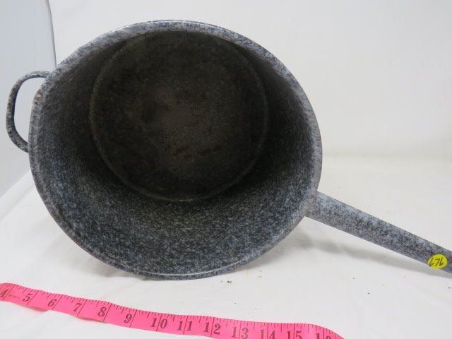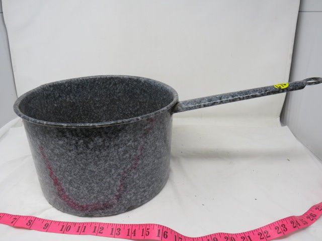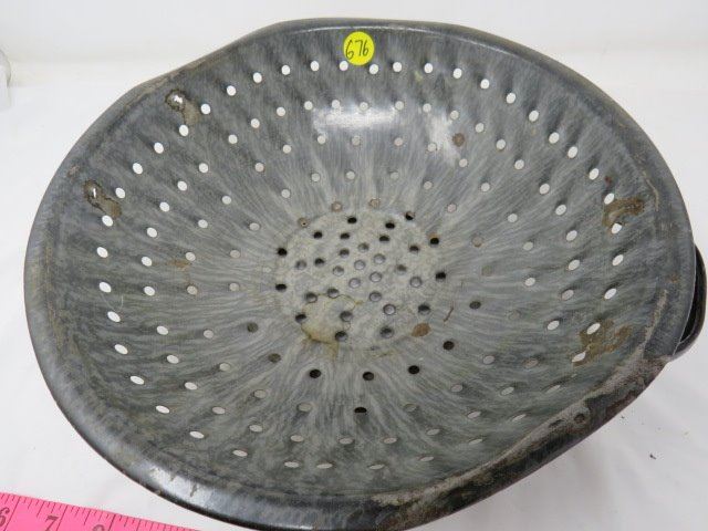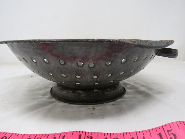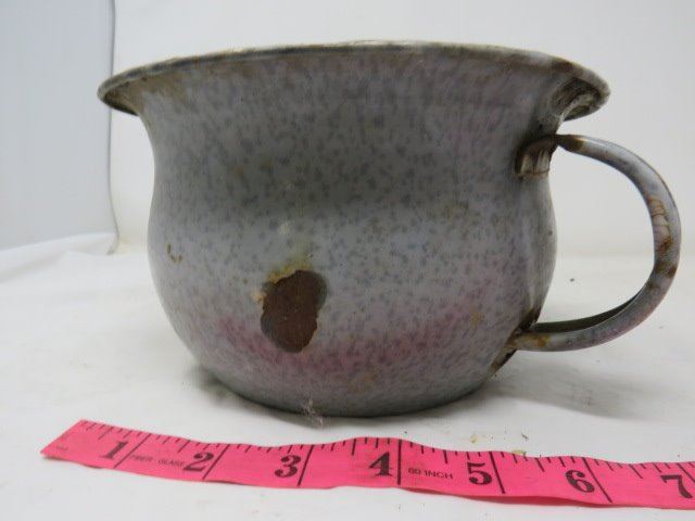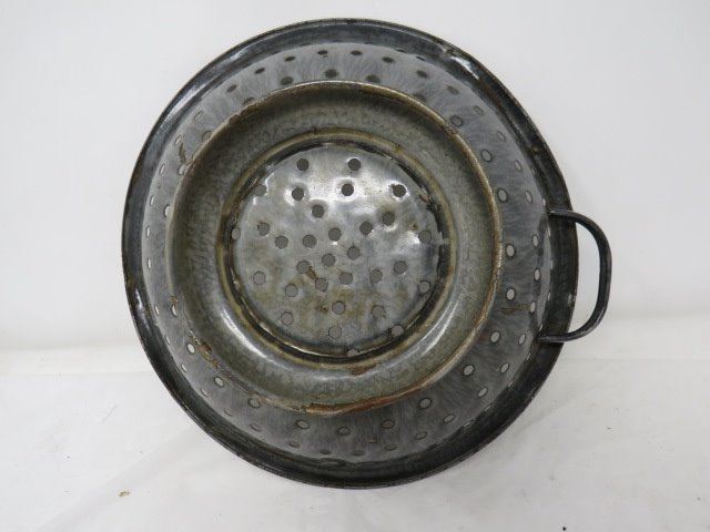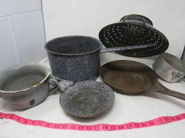 LOT OF 6 POTS AND PANS (COLANDERS, FRYING PANS, POTS, CHAMBER POT ETC…)