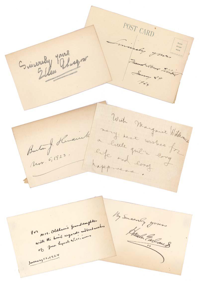 Maud Howe Elliott (1854 –1948). Burton J. Hendrick (1870-1949), Margaret Widdemer (1884 - 1978), Jess Lynch Williams (1871-1929), Ellen Glasgow (1873 – 1945), Hamlin Garland (1860 – 1940). All generally fine or better.