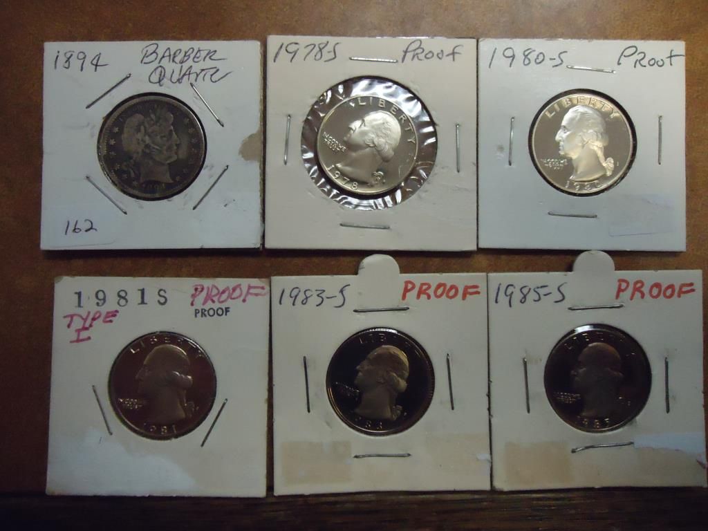 1894 BARBER QUARTER, 1978-S WASHINGTON  QUARTER PROOF, 1980-S WASHINGTON QUARTER  PROOF, 1981-S WASHINGTON QUARTER PROOF,  1983-S PROOF AND 1985-S PROOF