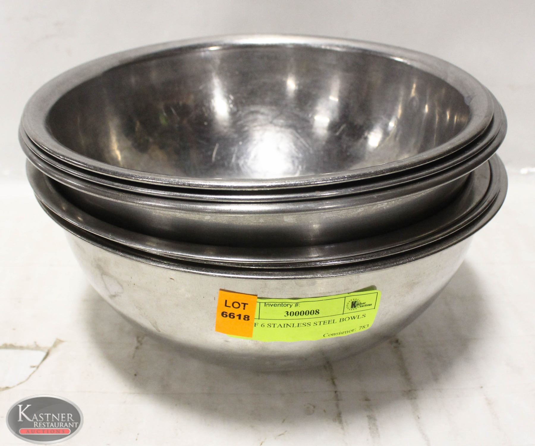 LOT OF 6 STAINLESS STEEL BOWLS 9"