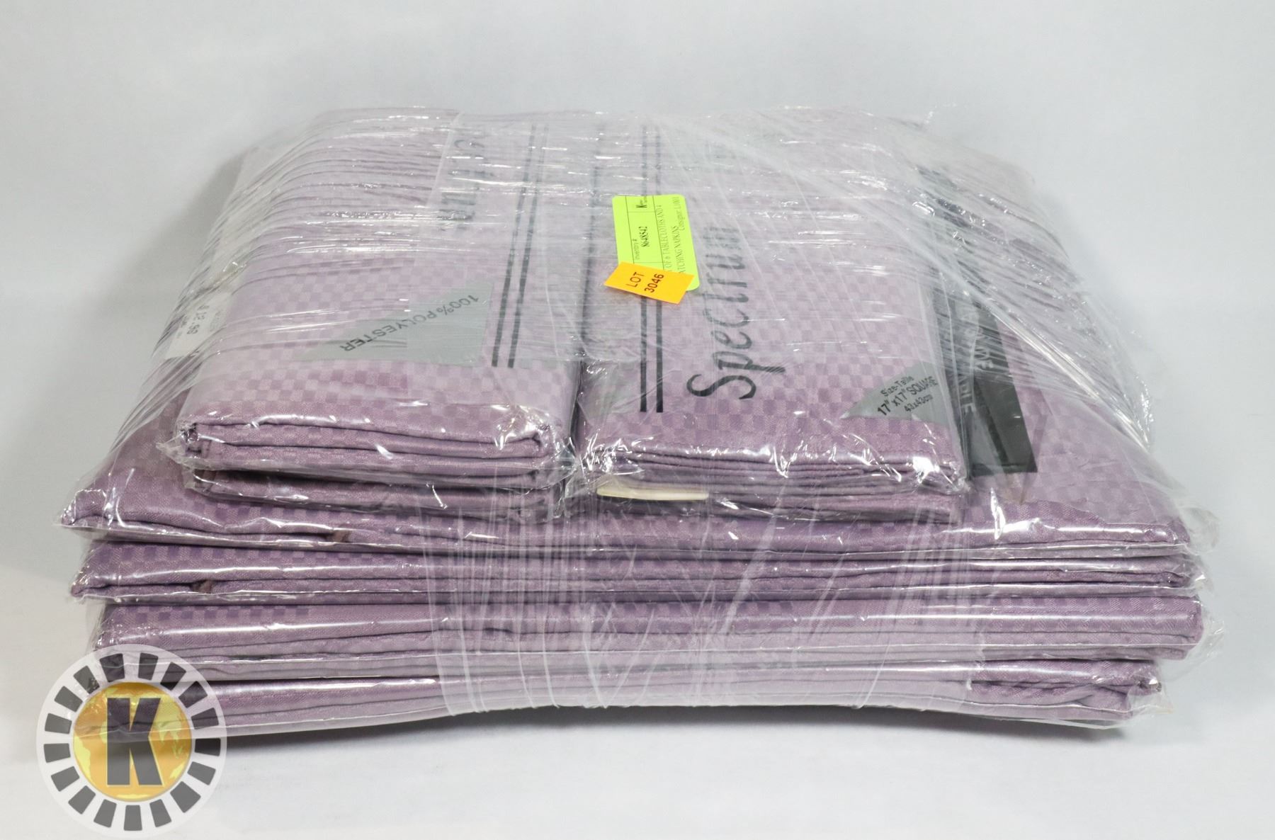 SPECTRUM TEXTURED 100% POLYESTER PURPLE TABLECLOTH SPECTRUM TEXTURED 100% POLYESTER PURPLE NAPKINS 4 PER PACKAGE***ITEM(S) LOCATED IN LETHBRIDGE ALBERTA. SMALL ITEMS ONLY ARE AVAILABLE FOR FREE TRANSPORT TO EDMONTON OFFICE (READ AUCTION DETAILS FOR MORE INFORMATION)
