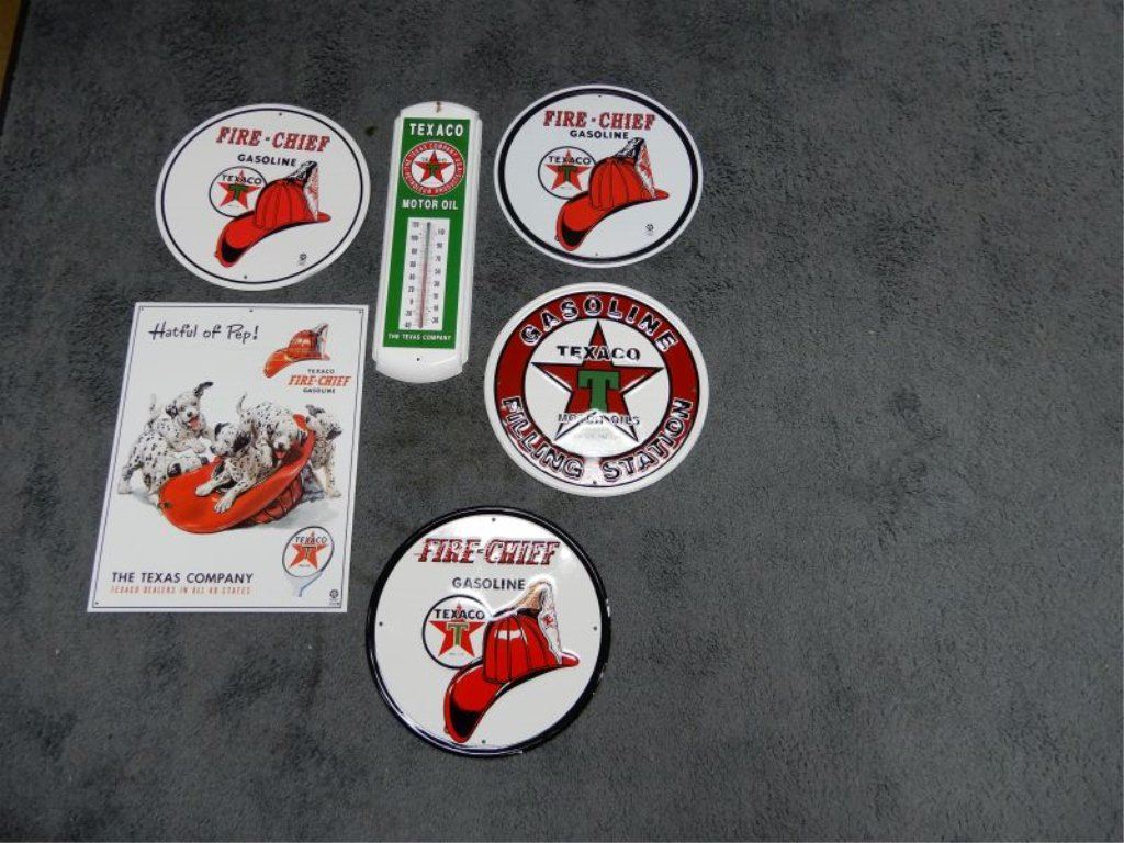 LOT OF 6 TEXACO SST SIGNS - REPRO THERMOMETER- ROUND EMBOSSED- FIRE CHIEF LOCATION: LOWER RIGHT