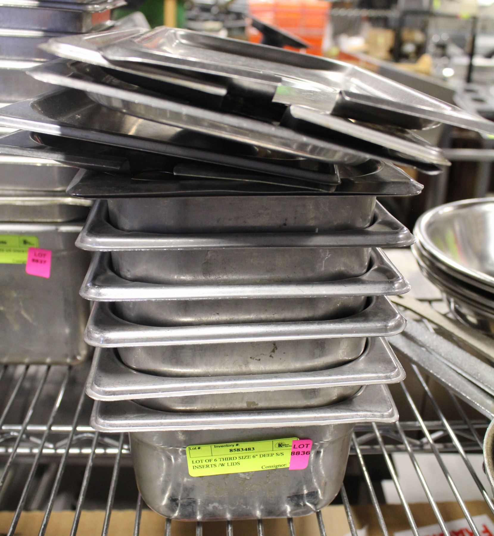 LOT OF 6 THIRD SIZE 6" DEEP S/S INSERTS /W LIDS
