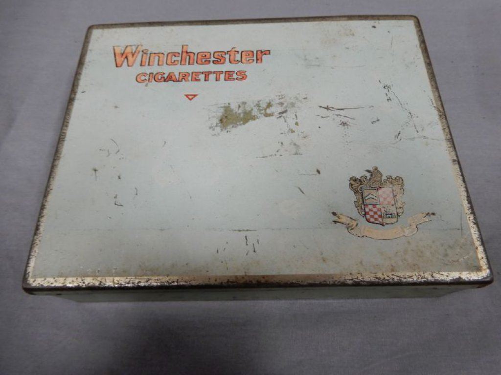 LOT OF 6 TOBACCO TINS PICOBAC WITH MATCH STRIKE BOTTOM 2 EDGEWORTH, PLAYER'S, MACDONALD'S FLAT 50, WINCHESTER UPPER BACKROOM LOCATION: UPPER BACKROOM