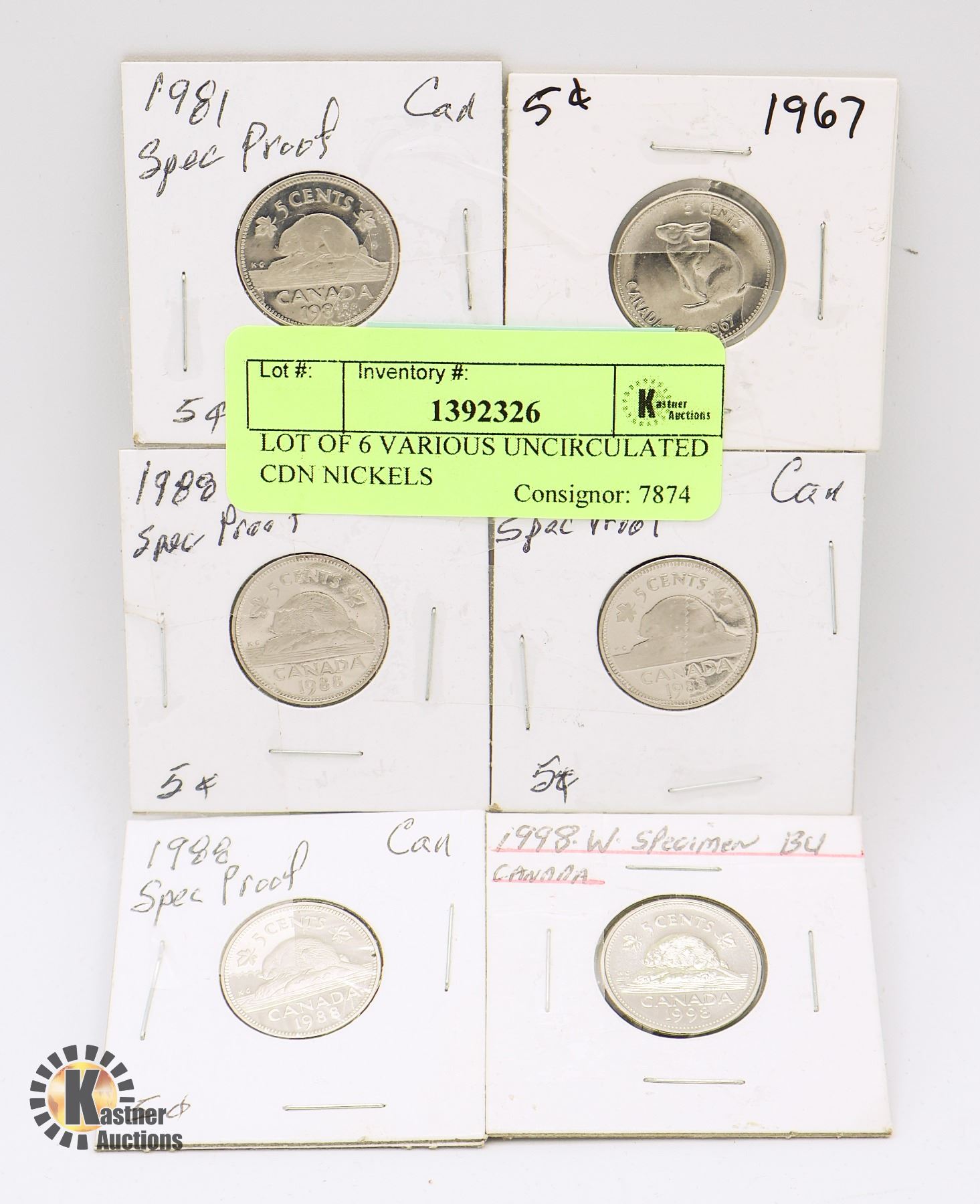 LOT OF 6 VARIOUS UNCIRCULATED CDN NICKELS