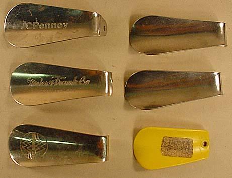 LOT OF 6 VINTAGE ADVERTISING SHOE HORNS - Incl. Meier and Frank Co., JC Penny, more.